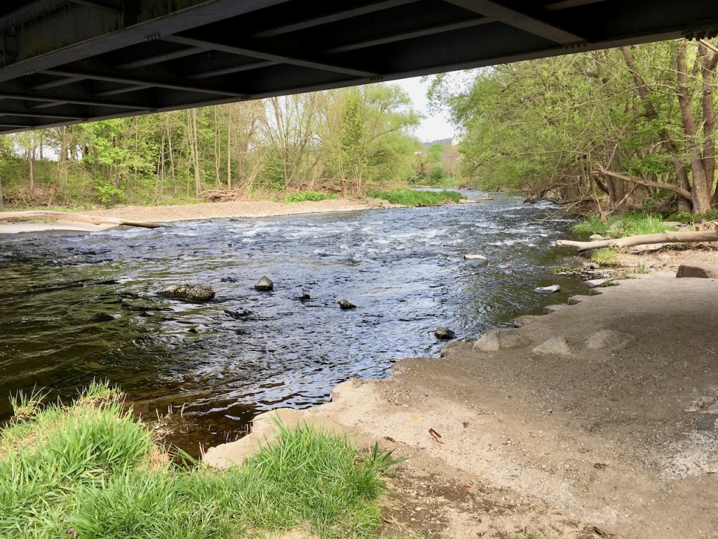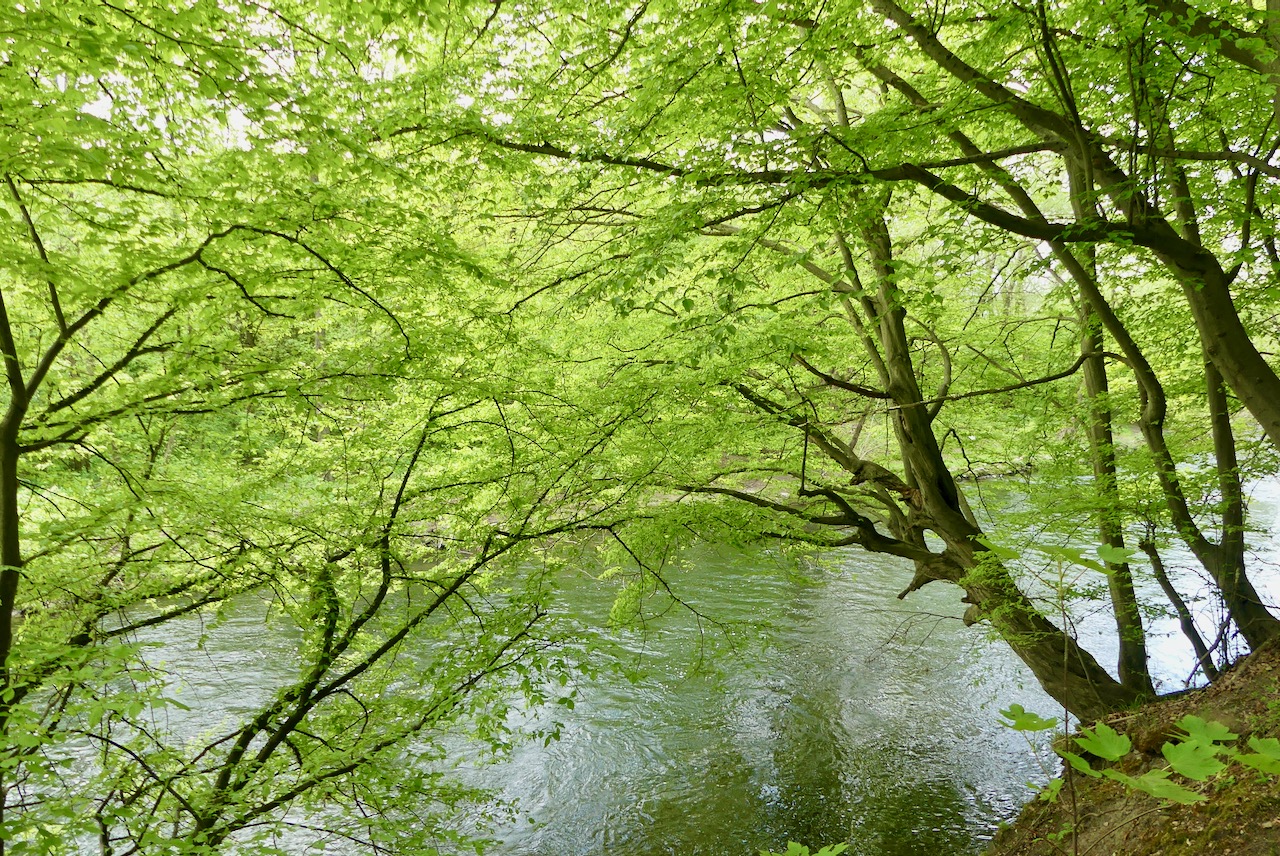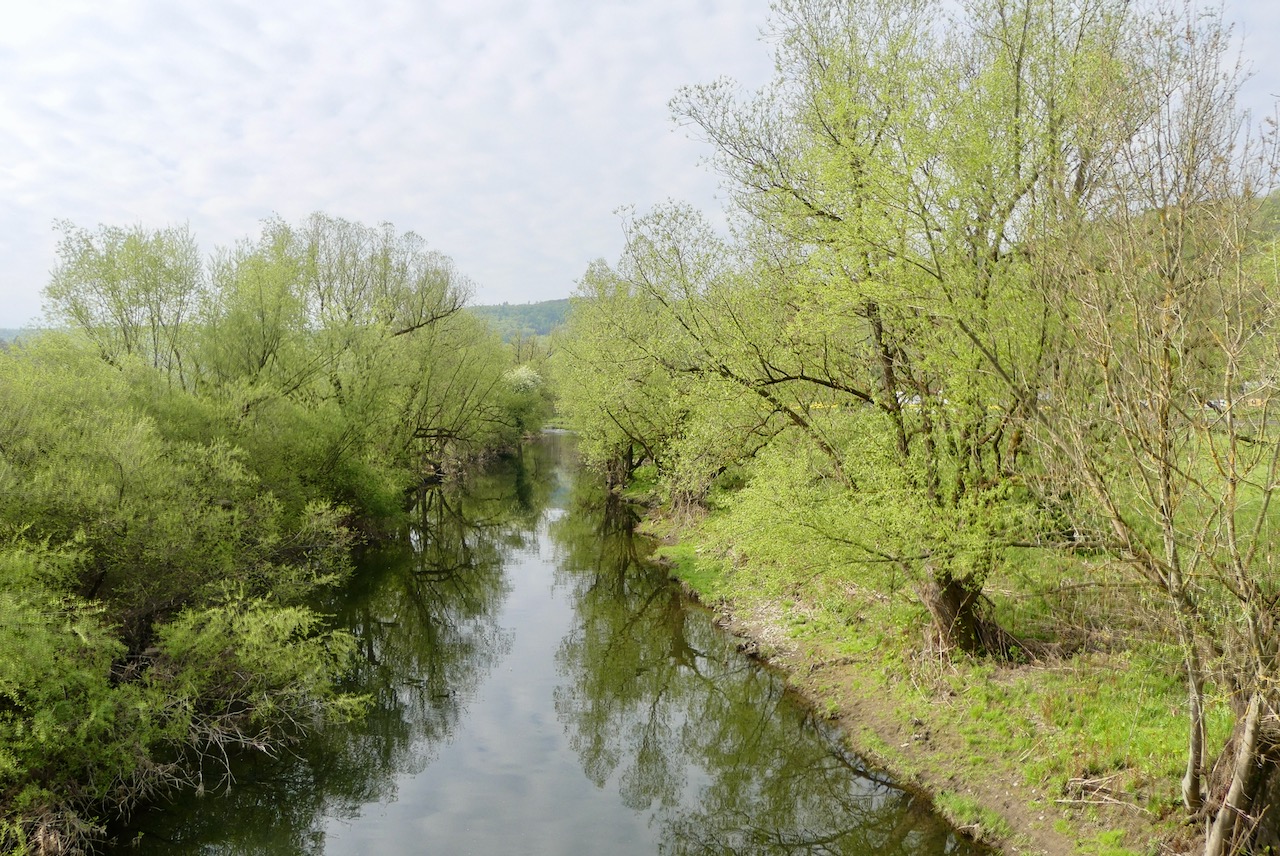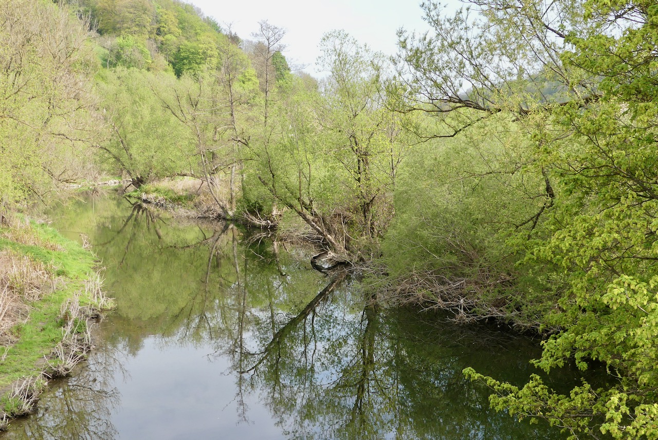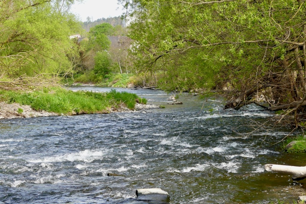 Hinter Arnsberg führt der Weg so mehr oder weniger an der Ruhr entlang und schließlich in einem wunderschönen Waldweg. Der Weg geht oben am Hang entlang, und unten rauscht die Ruhr. Wieso rauscht die?