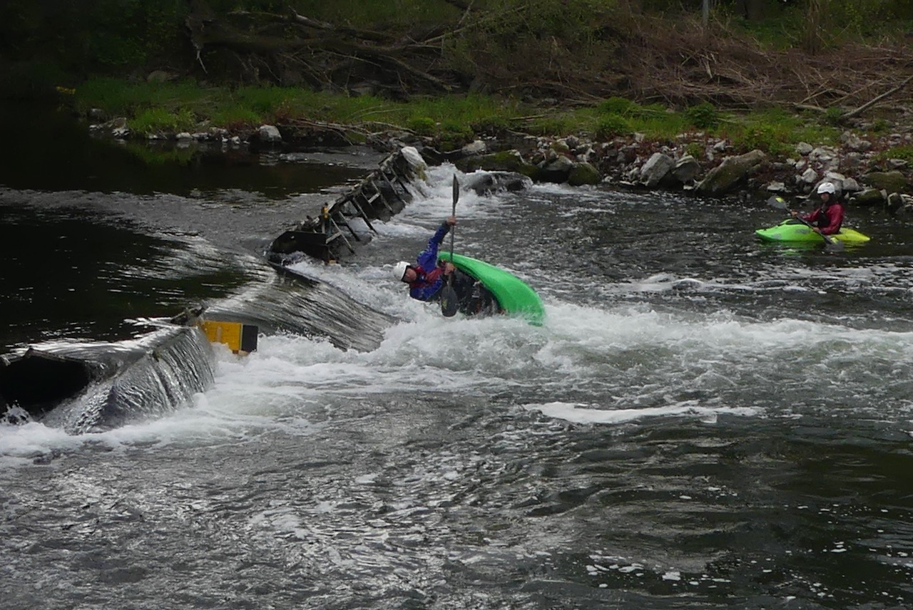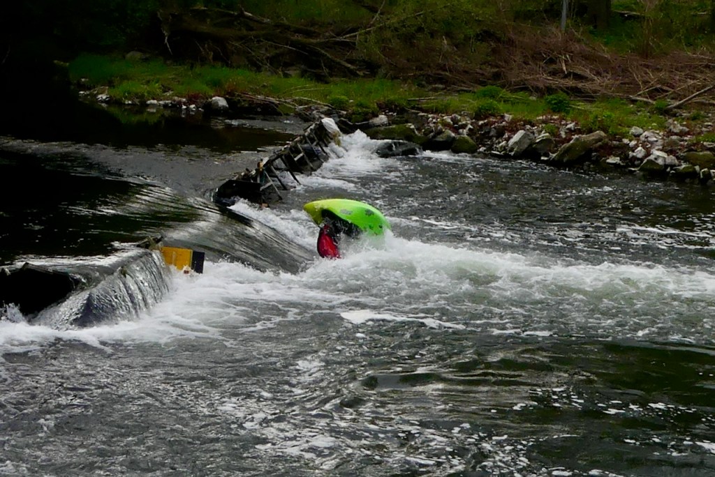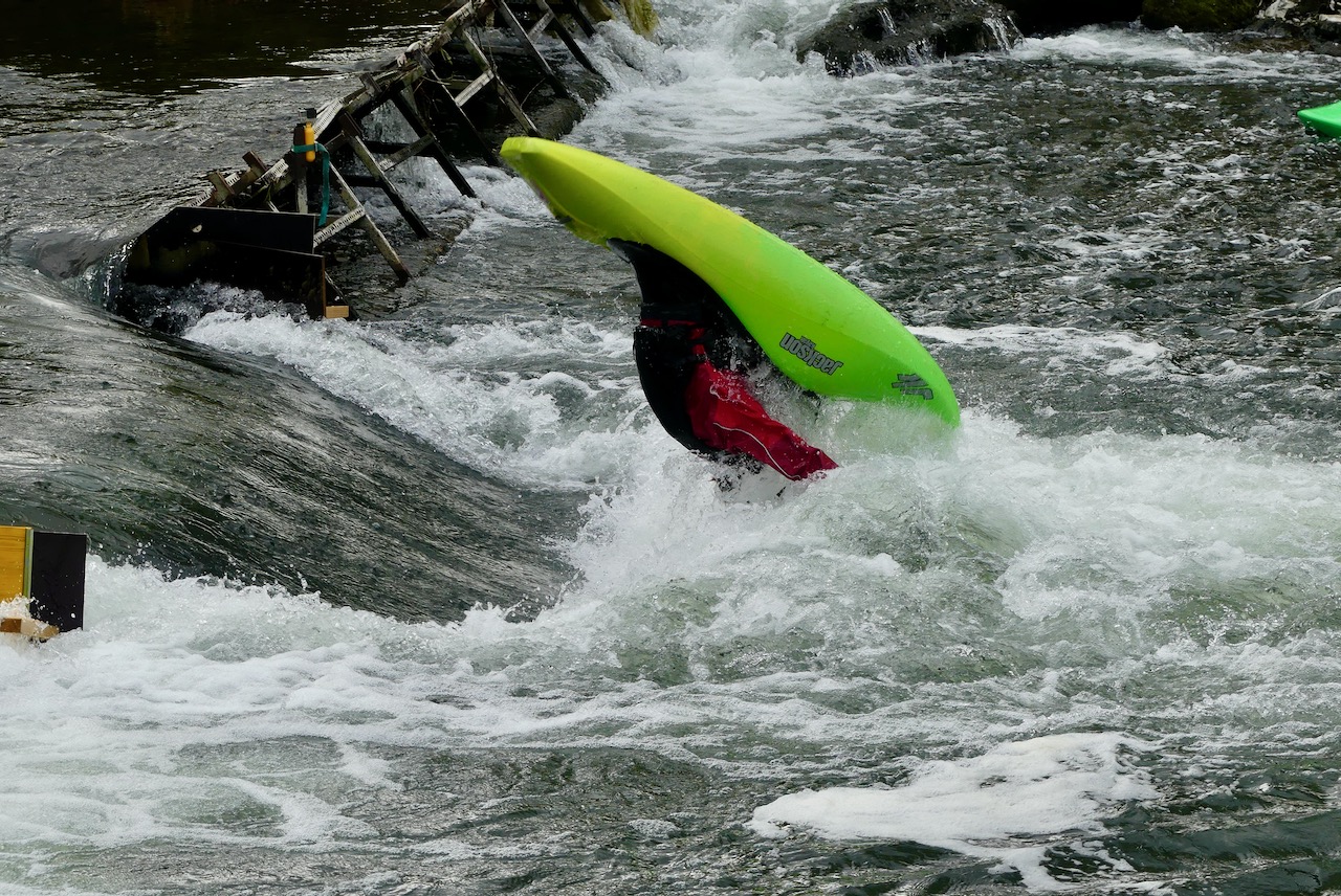 Wenig später komme ich an einen Schwall, an dem Kanuten spektakuläre Überschläge üben.