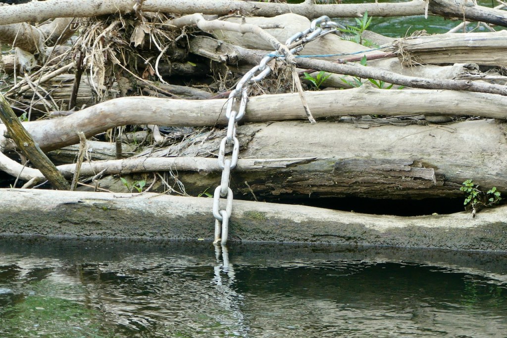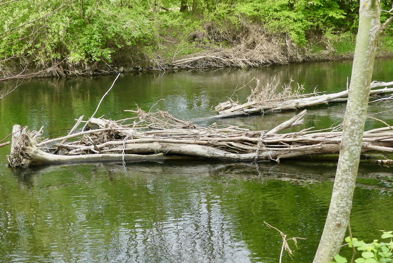 An der Einmündung der Möhne in der Ruhr, sieht man auch, dass es hier die Renaturierung noch nicht abgeschlossen ist. Das Totholz das hier im Fluss liegt, ist mit Ketten angebunden.