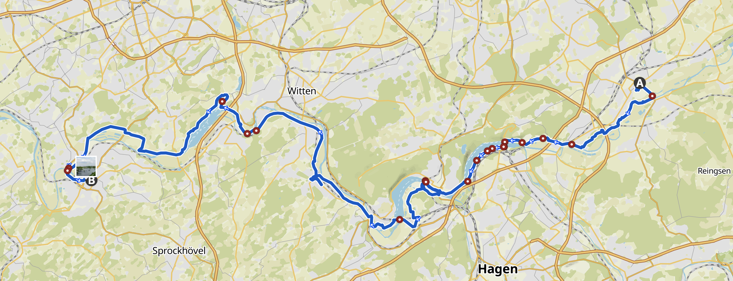 Am Harkort See möchte ich die vorgeschriebenen Strecke verlassen und direkt am rechten Seeufer entlang fahren, aber leider ist die Strecke gesperrt. Also wieder zurück auf den Ruhrtal-Radweg der sich vom See entfernt. Nach Hagen hinein will ich aber definitiv nicht mehr, auch nicht in die Vorhölle von Hagen. Ich finde einen örtlichen Radweg durch den Wald und am Klärwerk vorbei.