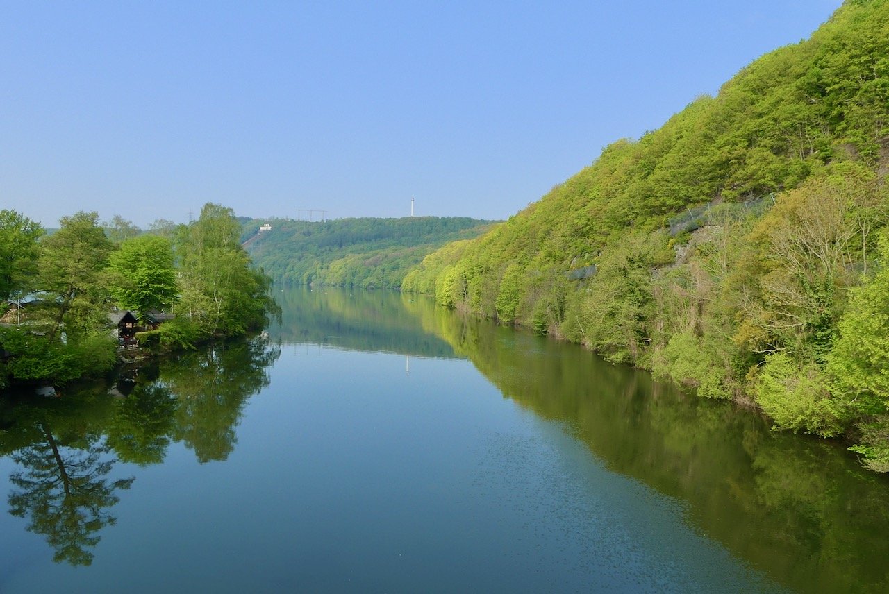Zuerst kommt der schöne Hengsteysee. Ich pelle mich langsam aus den Klamotten. Seit Bigge habe ich mehrere Klimastufen durchschritten: von Spätwinter zum Frühling. Es wird wärmer. Im Hochsauerland war es noch weitgehend kahl (von Waldschäden ganz zu schweigen) Hier fangen schon die Kastanien an zu blühen.