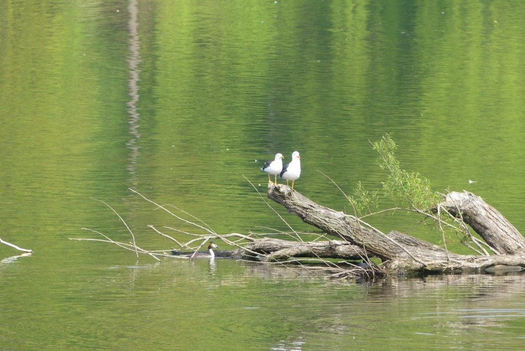 Danach geht es zunächst einmal auf einem Bahndamm oberhalb der Ruhr weiter. Ich setze mich auf eine Bank, um den Döner zu verdauen, beobachte von oben eine Nutria und mehrere Kanadagänse. Unten liegt das Naturschutzgebiet Gederweiden.