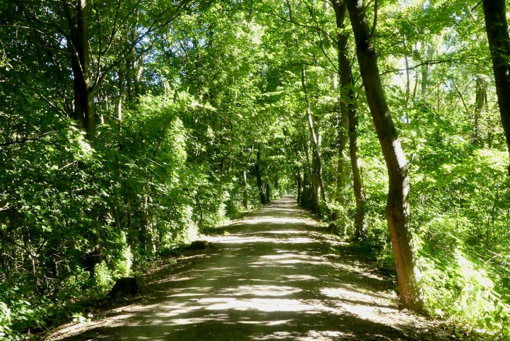 Kaum bin ich wieder raus aus dem Gewühl schiebe ich schon wieder: Die Rampe hoch wo der Radweg unter der Autobahn verläuft.