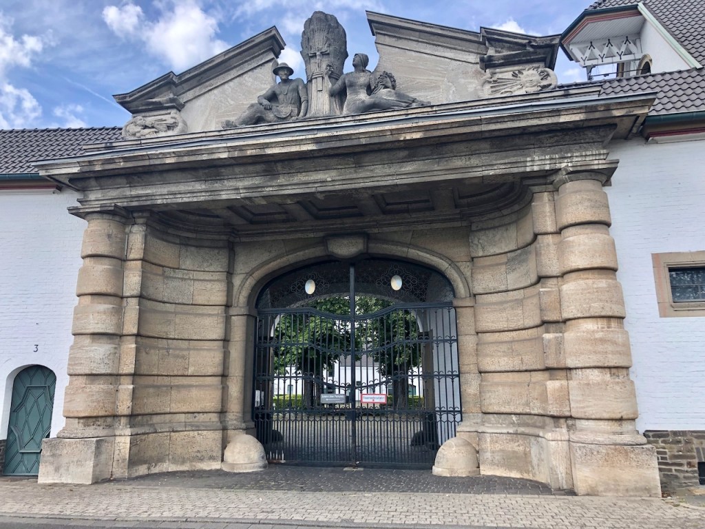 Die Eiler Straße war früher für mich die schnelle Fahrrad-Verbindung zu meinen Vettern in Urbach, ist aber heutzutage eher unangenehm zu fahren. Auf der rechten Straßenseite werde ich regelmäßig von Autos, sogar Fahrschulwagen, bedrängt. Von 1,50m Abstand haben hier selbst die Fahrlehrer noch nichts gehört. Auf Höhe von Gut Maarhausen kann ich die Seite wechseln zu einem gemeinsamen Geh/Radweg am Gestüt Röttgen entlang der aber auch seine besten Zeiten schon hinter sich hat. Schmal und hubbelig. Gegenüber von Gestüt Röttgen liegt Gut Maarhausen. Früher wurden hier auch Pferde gezüchtet, nach Leerstand und Umbau sind darin Gewerberäume und Ateliers untergebracht.