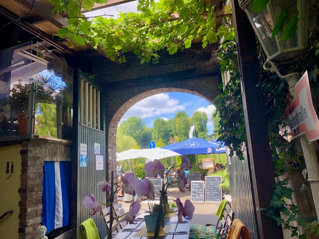Der auserwählte Biergarten am Zündorfer Markt war schon voll, aber ich bekam einen schönen schattigen Platz im Innenhof. Eigentlich wollte ich anschließend nur eine kleine Runde um die Groov drehen und dann am Rhein zurück. Aber wieso eigentlich?