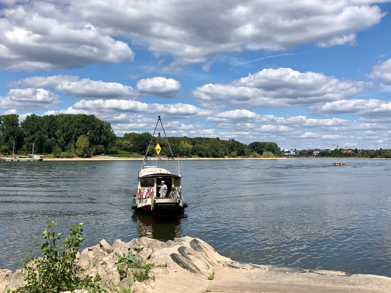 Es gibt ja Krokodil und Krokolino. Ich kann mich nicht erinnern, diese Fährverbindung schon einmal genutzt zu haben, die Zündorf mit den linksrheinischen Stadtteilen Weiß und Rodenkirchen verbindet. Und das mache ich jetzt, bevor es zu spät ist. Denn der Fährmann ist schon über 80 und ein neuer Schipper mit Bootsführerschein wird mittlerweile verzweifelt gesucht. Beim warten auf die Fähre zickt mich das neue Schmachtfon an. Macht unkontrolliert Fotoserien wenn ich nur ein Foto machen will und ich finde nichts, woran man das abstellt.