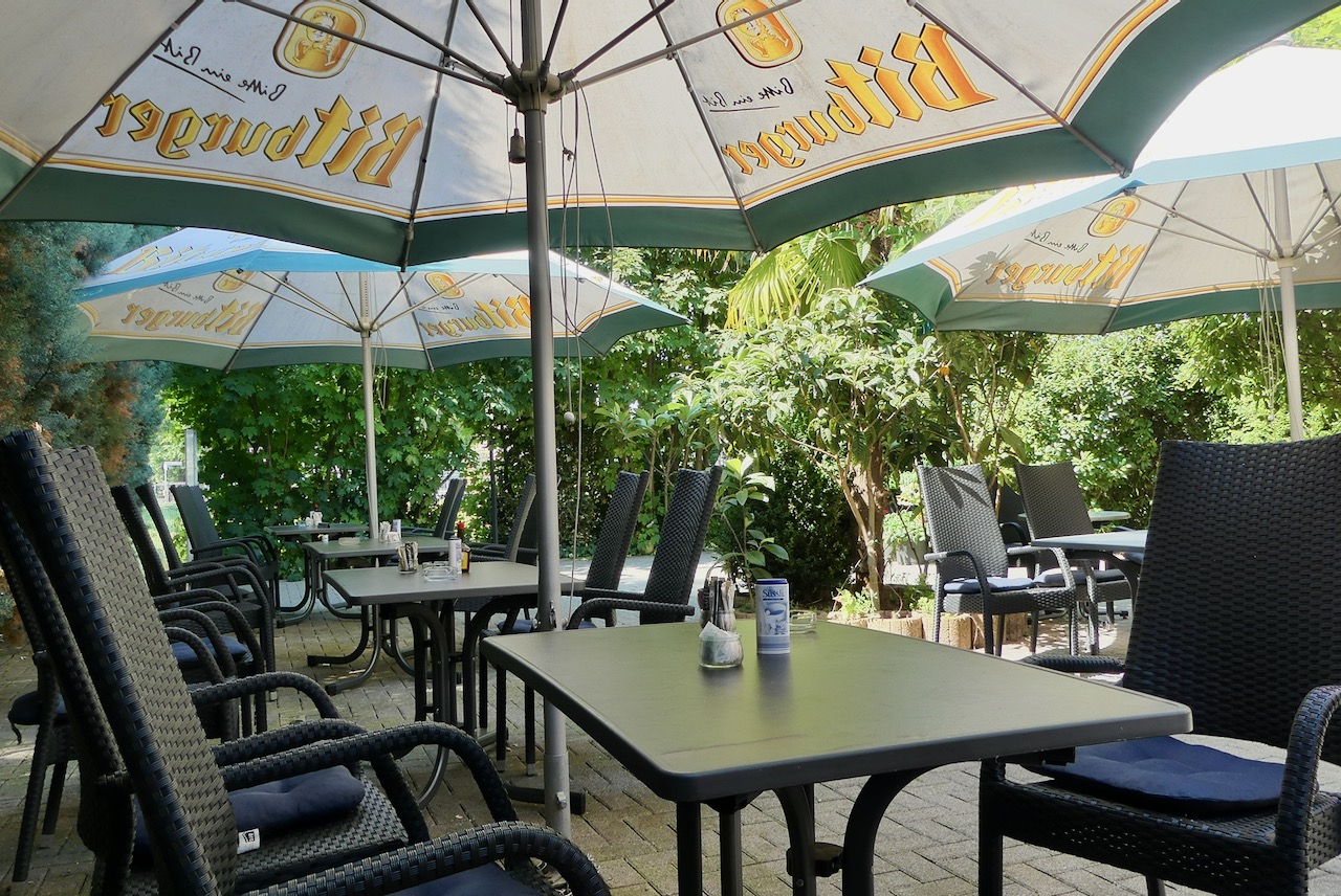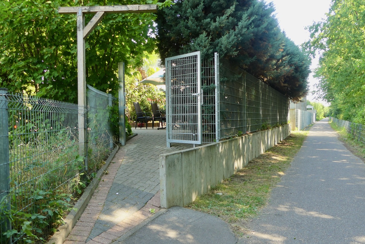 Eine bekannte Strecke andersrum zu fahren eröffnet auch immer neue Ein- und Ausblicke. Bin ich hier wirklich lang gefahren? Stand da dieses Gebäude? Warum geht das hier hoch? An dem unauffälligen Törchen wäre ich fast vorbei gerauscht. Dahinter verbirgt sich ein Biergarten für die Siesta.