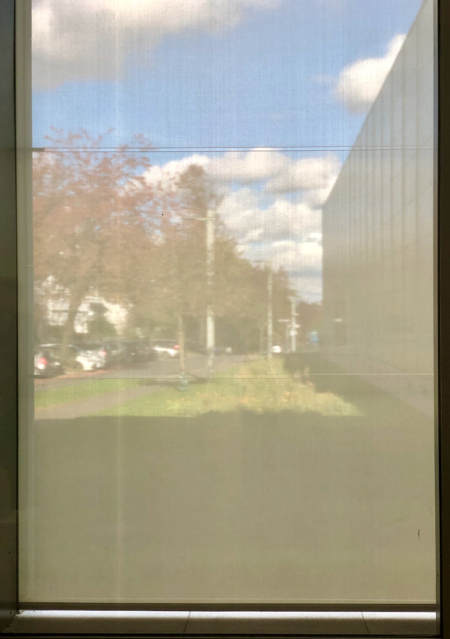 Rechts ist nur Kunst a la Bibo: Blick durch einen Gazevorhang nach außen.
