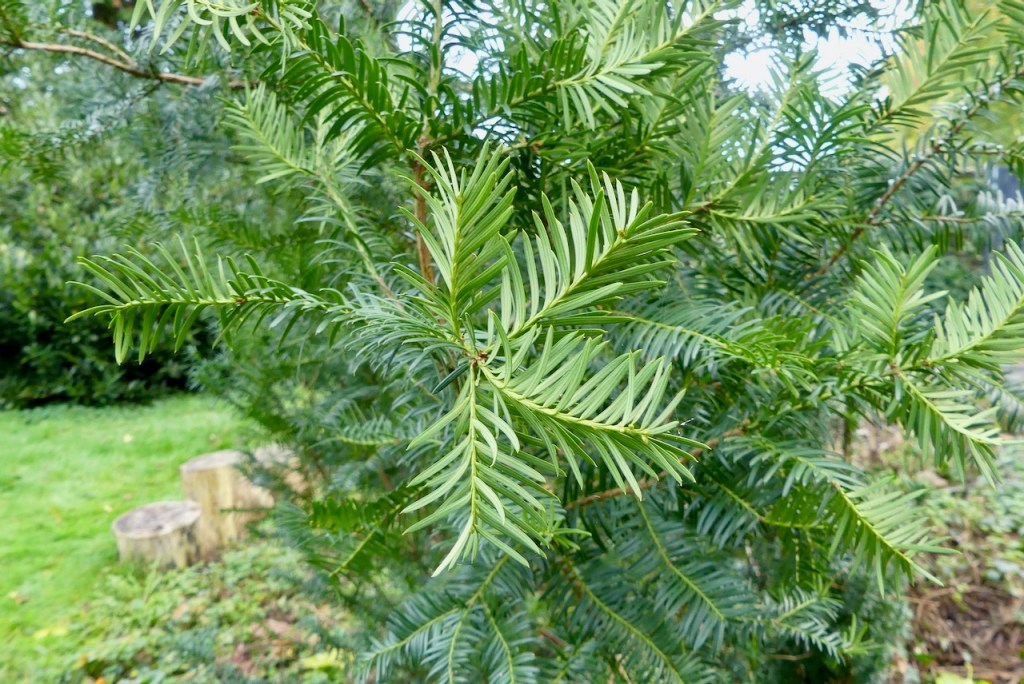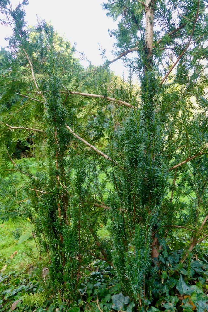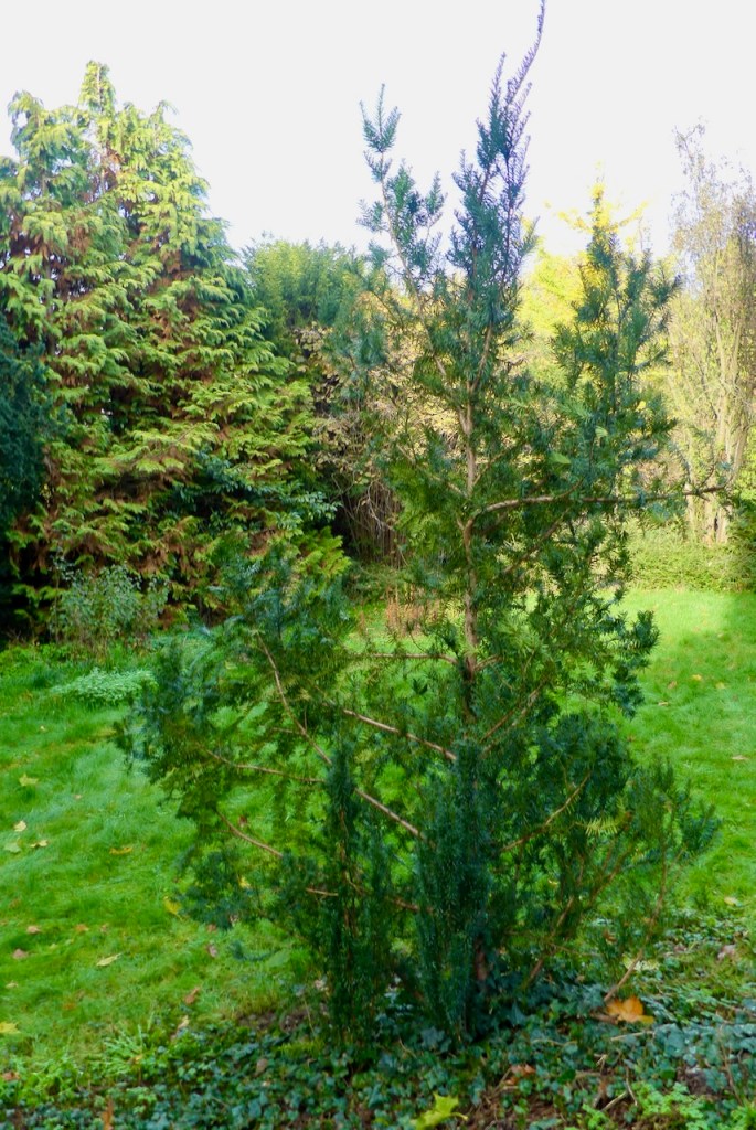 Hinter der Eibe stehen noch zwei kleine … ja was? Wachholder?