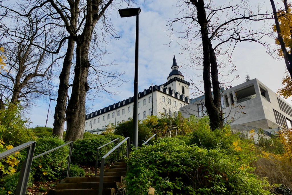Das Buch „Das Testament des Teufels“ hinterlasse ich in der Bausünde nebenan. Der häßliche Kasten ist ein Hotel und Tagungsstätte.