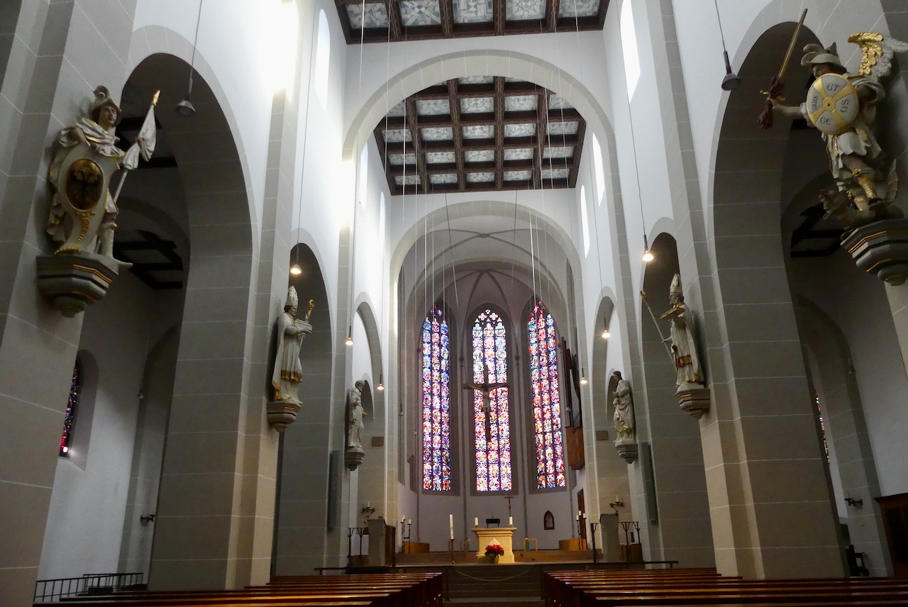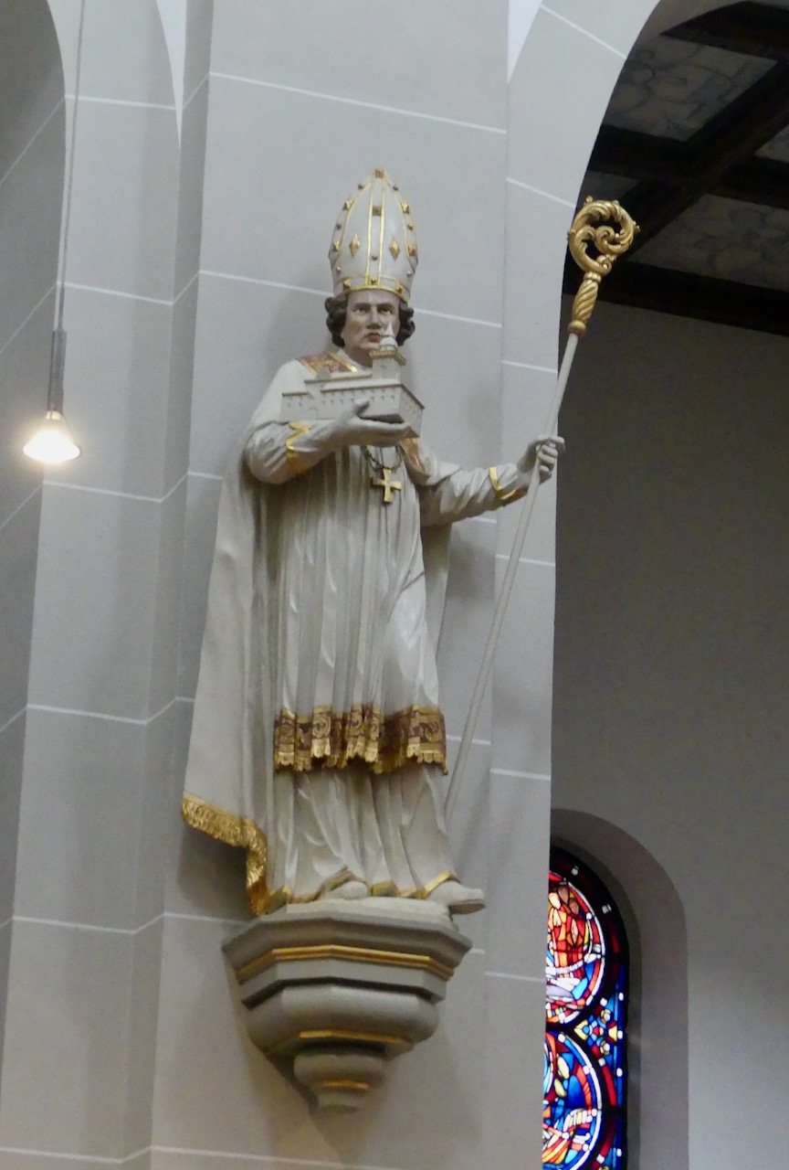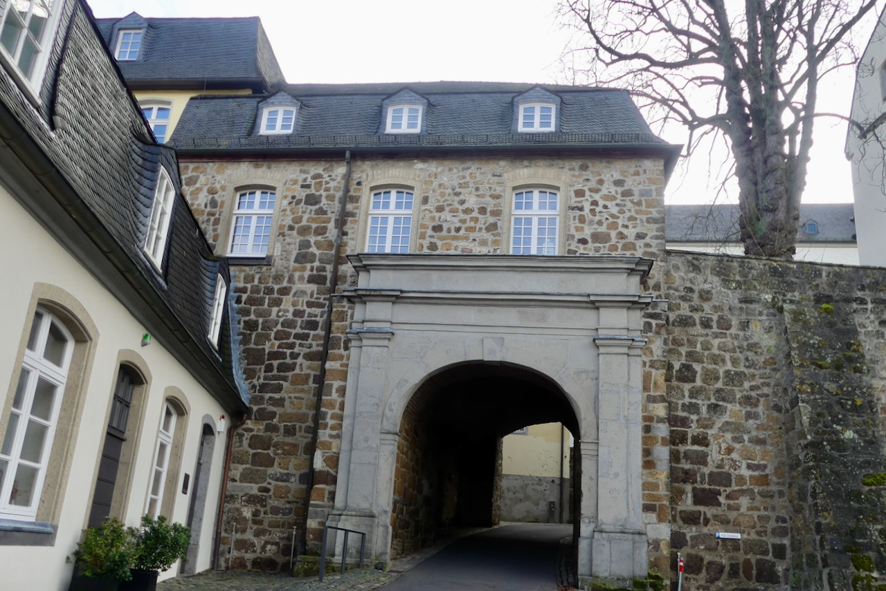 In die Kirche kann man reinschauen, in die Klosteranlage selbst aber nicht. Der Bischof hat die verstörende Eigenschaft, zurückzuschauen, egal, wo man steht. Hier geht es also erstmal nicht weiter.