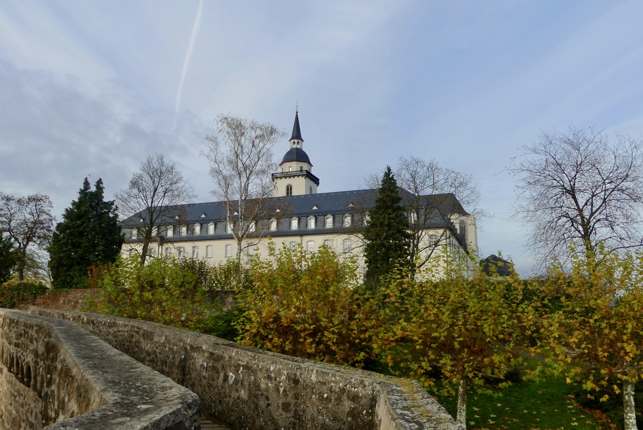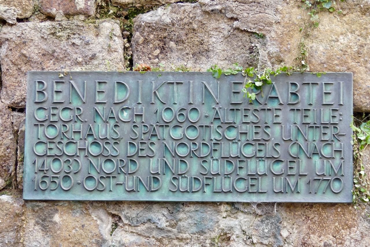 Die Abtei hat eine bewegte Geschichte hinter sich: 1803 säkularisiert, danach Irrenanstalt, Zuchthaus, wieder Kloster, Reservelazarett, dann Heimatmuseum, und schließlich 1944 fast völlig zerstört. Wieder kehrten die Mönche zurück und das Kloster wurde wieder aufgebaut.
