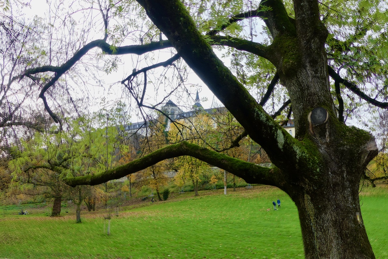 Die nächste Runde geht dann eine Etage tiefer durch den Park mit dem schönen alten Baumbestand und Blick auf den Michaelsberg.