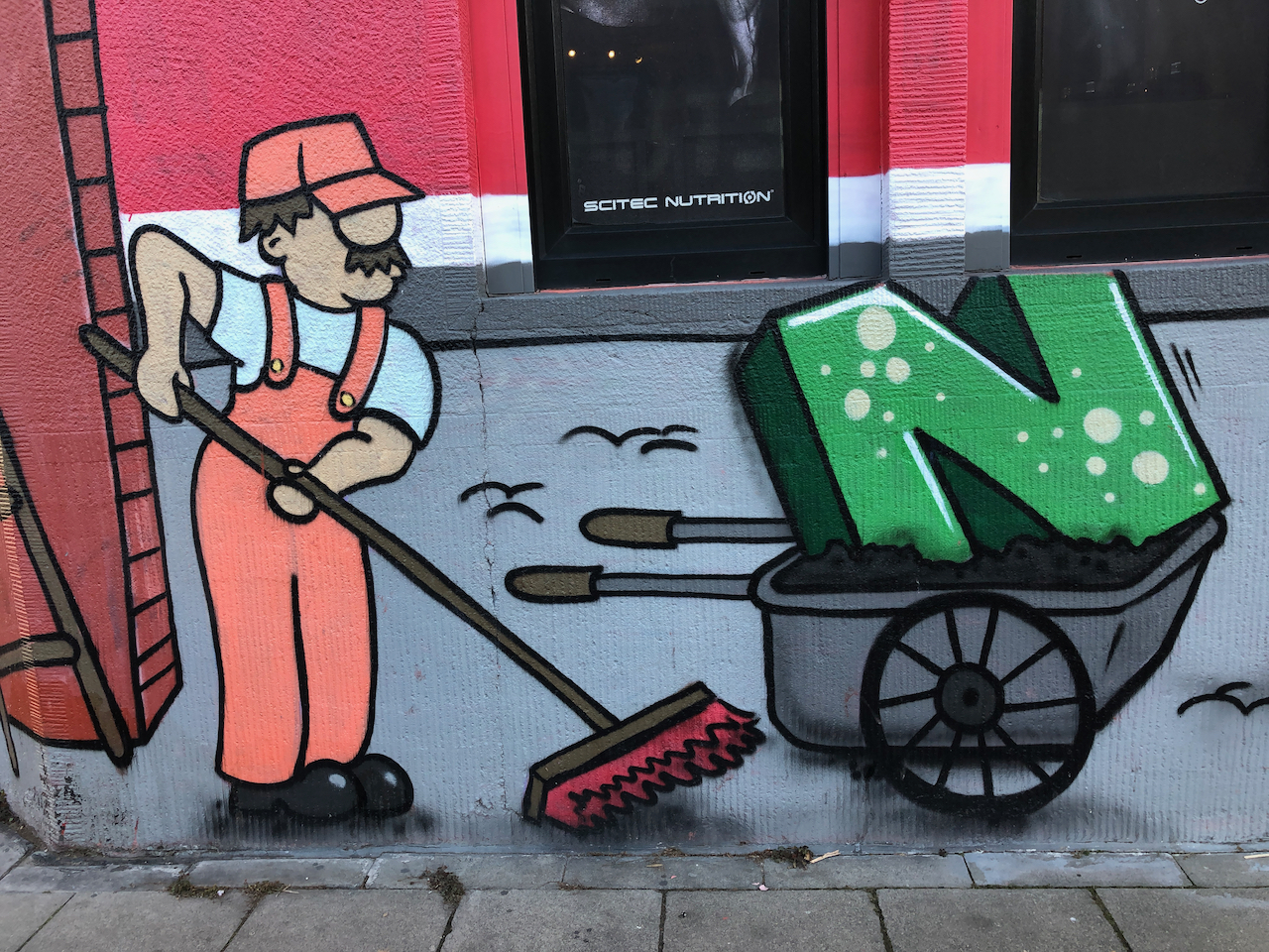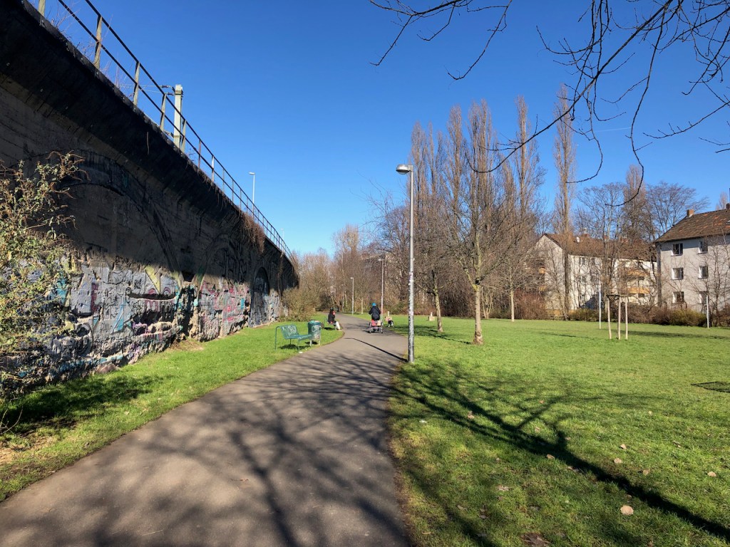 Entlang der stark befahrenen Inneren Kanalstraße reihen sich noch zwei Parks: Lis Böhle-Park und Lohsepark. Danach biege ich ab ins Sechzigviertel, wo mich kurz vor dem Bahnhof weitere Graffitikunst erwartet.