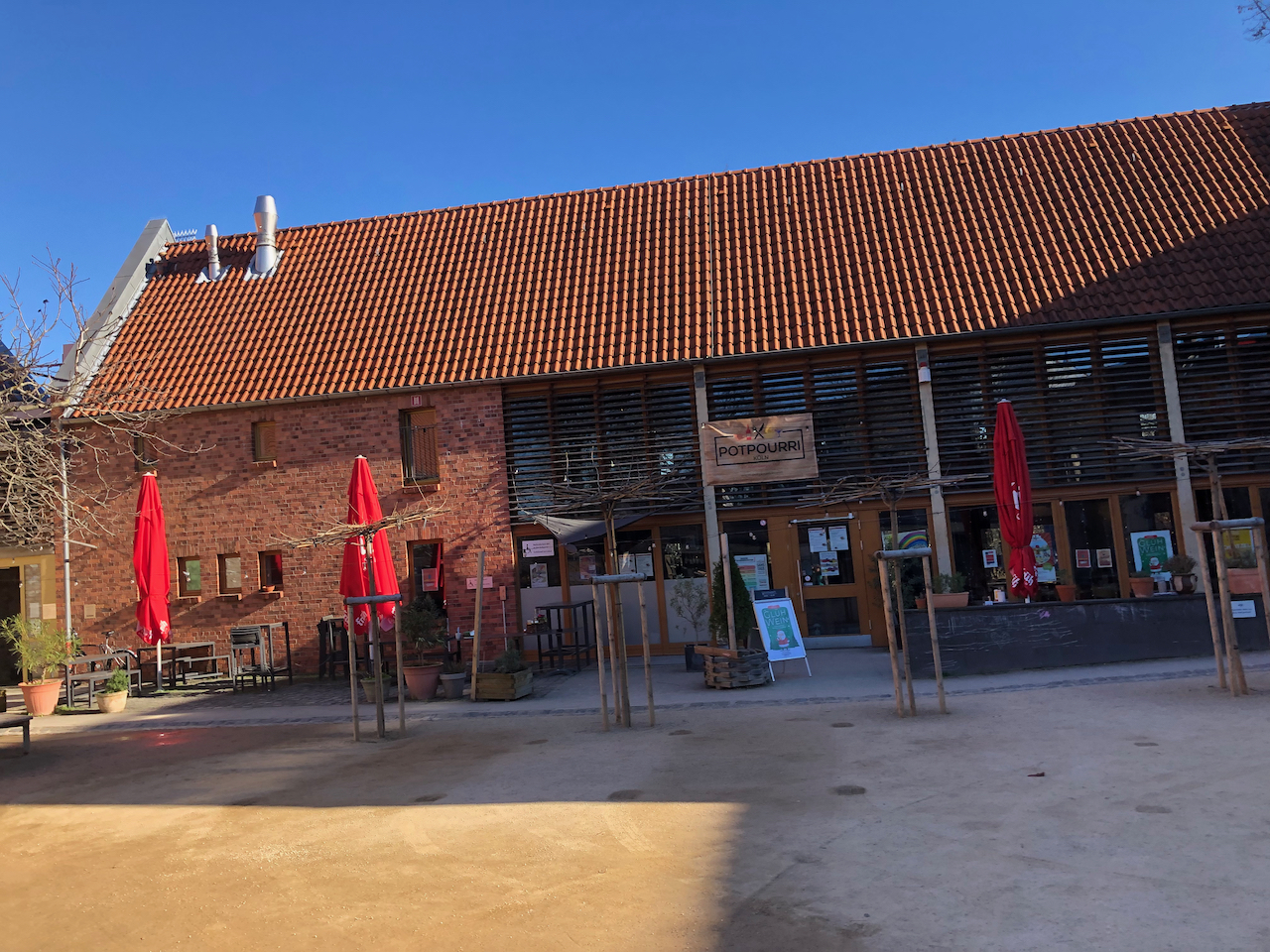 Die historische Hofanlage dient heute als Bürgerzentrum umgebaut. Sie gehörte zu den Mauenheimer Höfen, welche sich im Laufe des Mittelalters hier angesiedelt haben. Wie es der Zufall so will, steht im Innenhof ein öffentlicher Bücherschrank, in dem ich mein Buch entlasse.