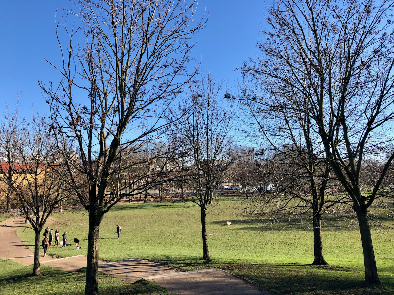 Fazit: Grüne, bis auf ein paar Straßenüberquerungen nahezu autofreie Runde. Ganz so eiskalt war es auch nicht. Was ich allerdings nicht gesehen habe, war das Innere des Stadtteils.