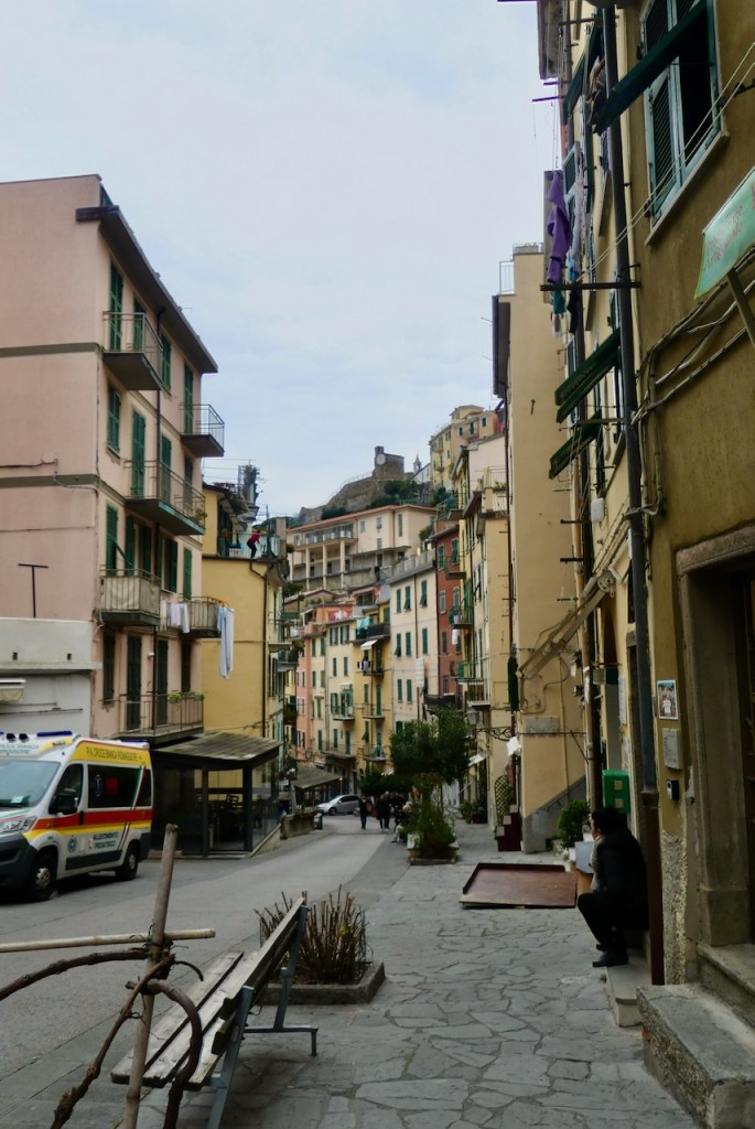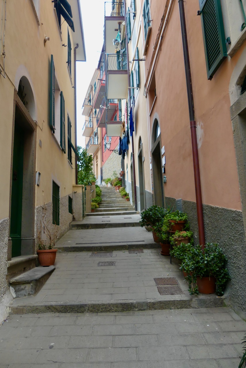 Ich nehme den Aufzug, gehe nochmal durch den Tunnel und klettere in den Hafen. Die Häuser hier haben einen etwas bröckeligen Charme. Ich bin ganz froh, dass ich in Levanto wohne und nicht hier. Aber die Essenszeiten werden nicht so eng gesehen und so bekomme ich noch leckeres Kaninchen in einem Gewölbe-Restaurant. Anschließend nehme ich mir noch einmal den für mich begehbaren Teil des Höhenwegs vor.