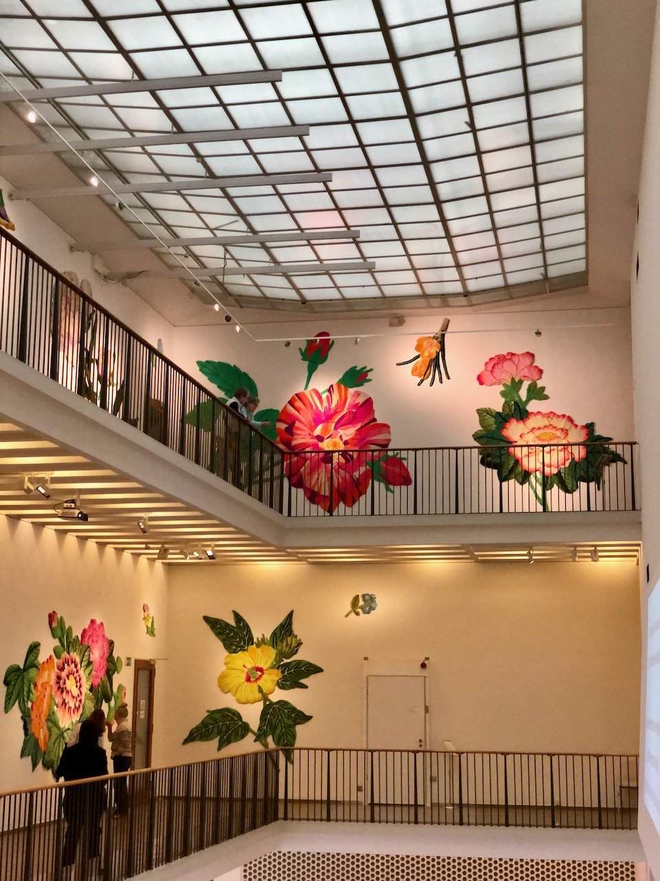 Plüschig geht es zu im Treppenhaus: Die Blumen von Susanne Taras sind wie Teppiche geknüpft.