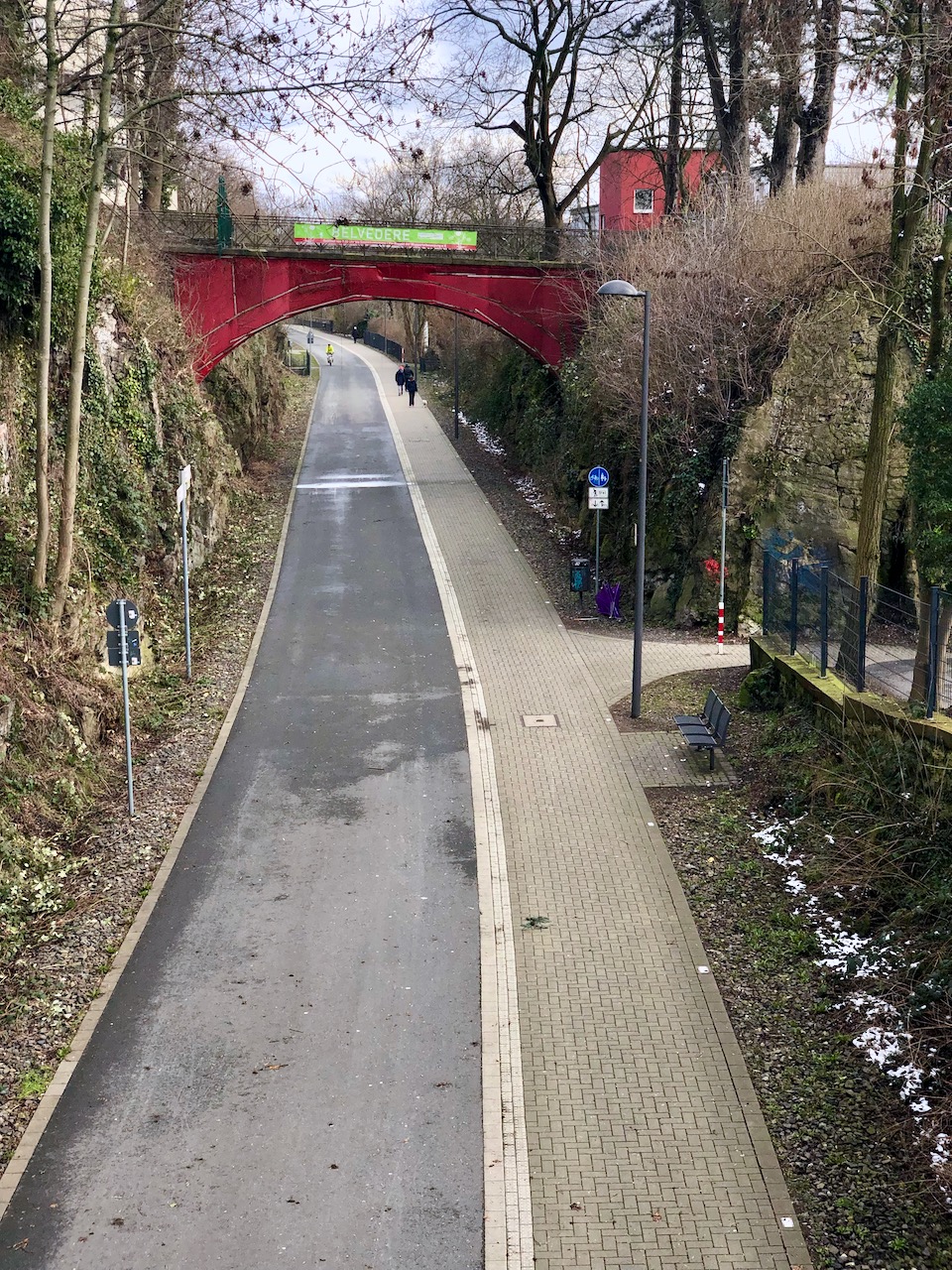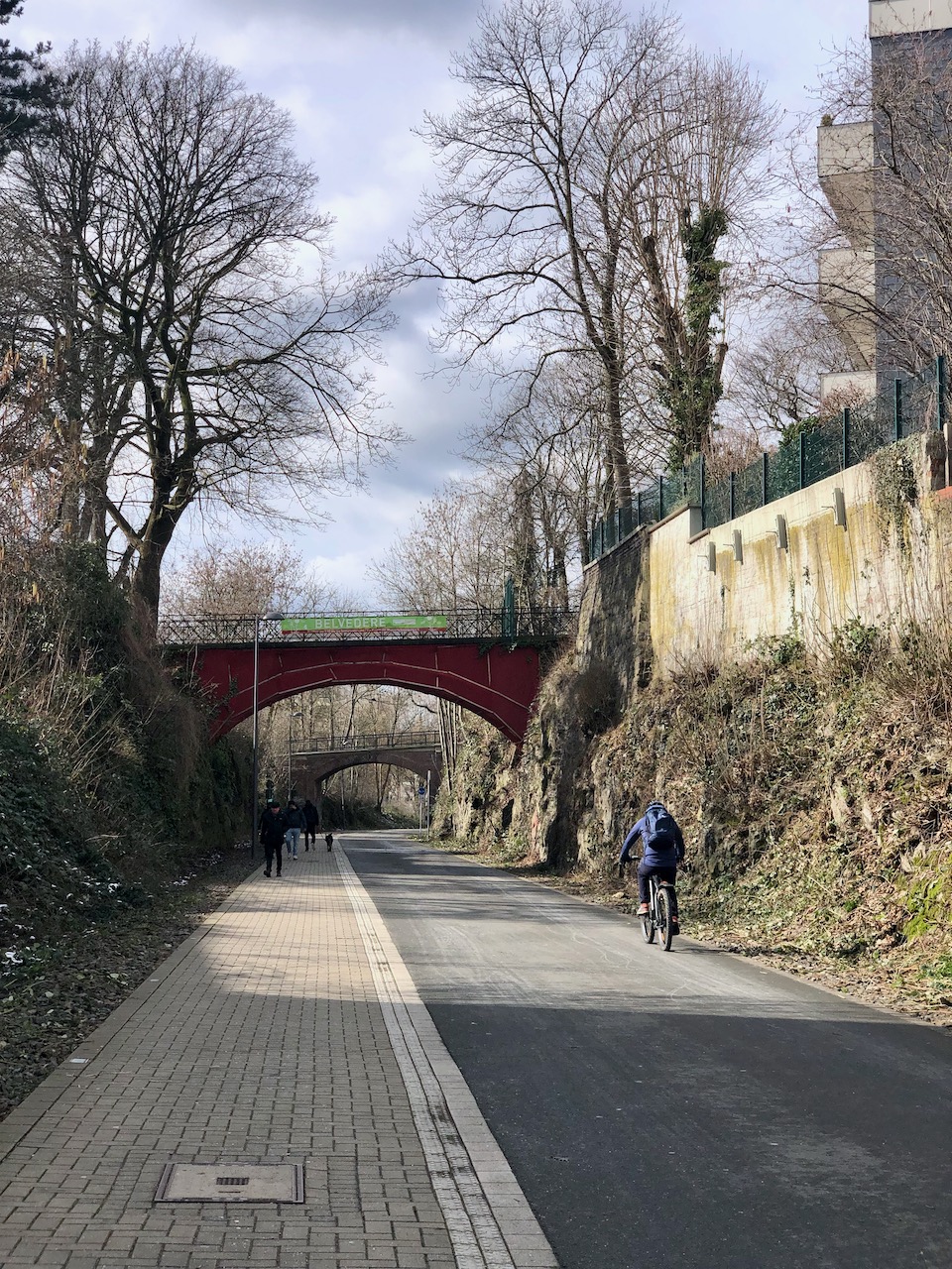 So sieht sie also aus, der autofreie Rad-und Gehweg auf der ehemaligen Bahnstrecke, die von der Wuppertalbewegung mit breiter Unterstützung der Bevölkerung initiiert wurde.
