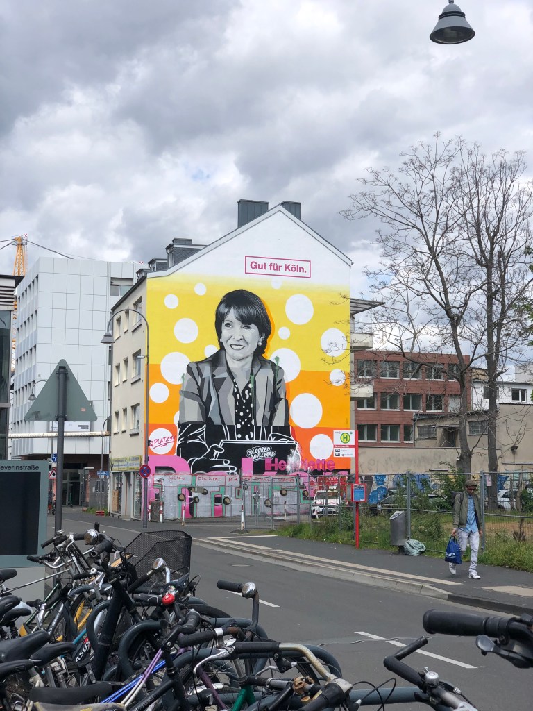 Severinstraße: Die parteilose Oberbürgermeisterin Henriette Reker wirbt mit dem Slogan „Gut für Köln“ der Wählergruppe GUT Köln, gleich neben der Einsturzstelle des Stadtarchivs. Drumherum die typisch Kölner „Stadtarchitektur“ in Bauklötzeform.