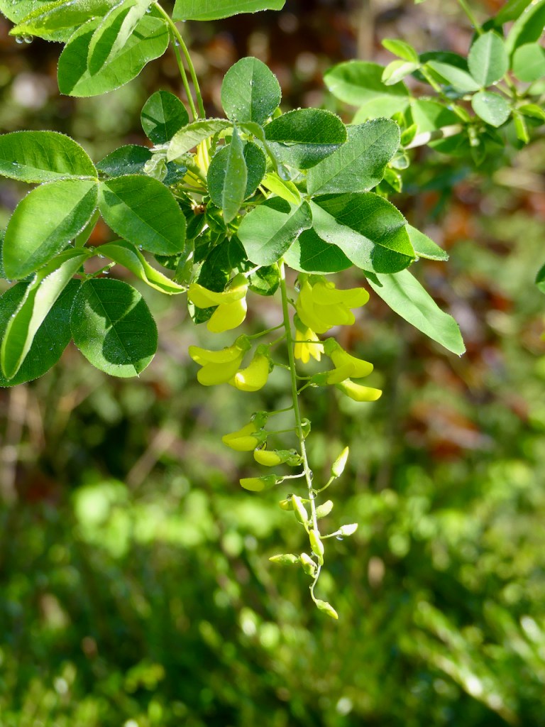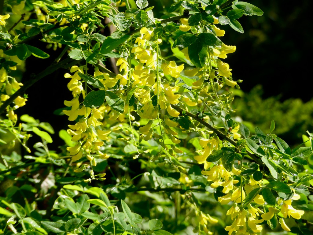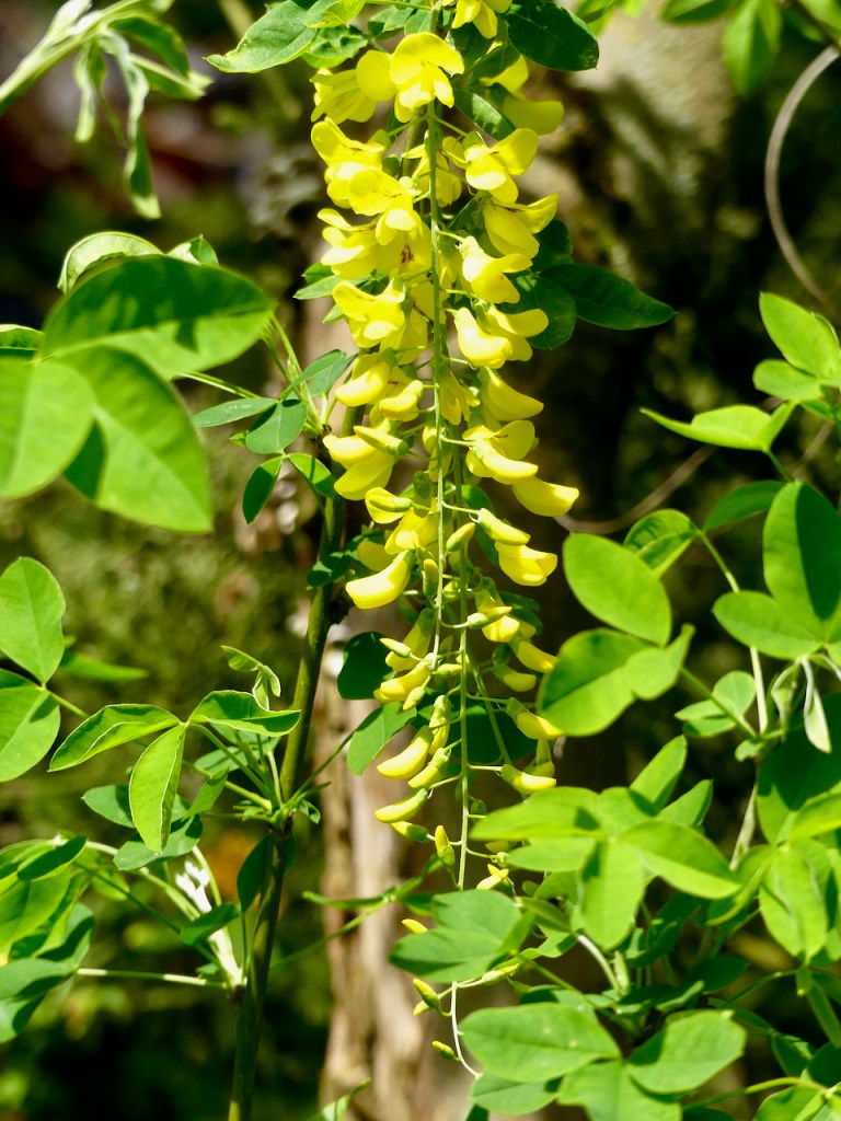 Das ist der dritte in diesem Garten. Der erste stand neben meiner Schaukel an meiner Spielwiese. Wie fast alle Leguminosen ist Goldregen hochgiftig. Heutzutage wird den Kinderchen Goldregen & Co aus dem Weg geräumt, unsereins wurde einfach erzogen: „Steck nichts in den Mund, was Du nicht kennst!“ Das hat mich leider auch für lange Zeit misstrauisch gegenüber durchaus essbaren Wildkräutern gemacht. Daran arbeite ich noch.
