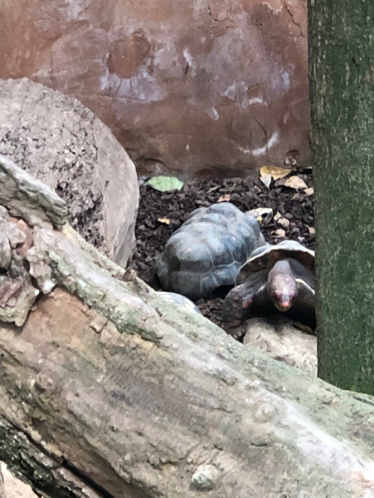 Auch im Regenwaldhaus ist man auch auf Liebe eingestellt: Ein Schildkröterich versucht einen Stein zu begatten, während der andere Erfolg bei der Dame hat.