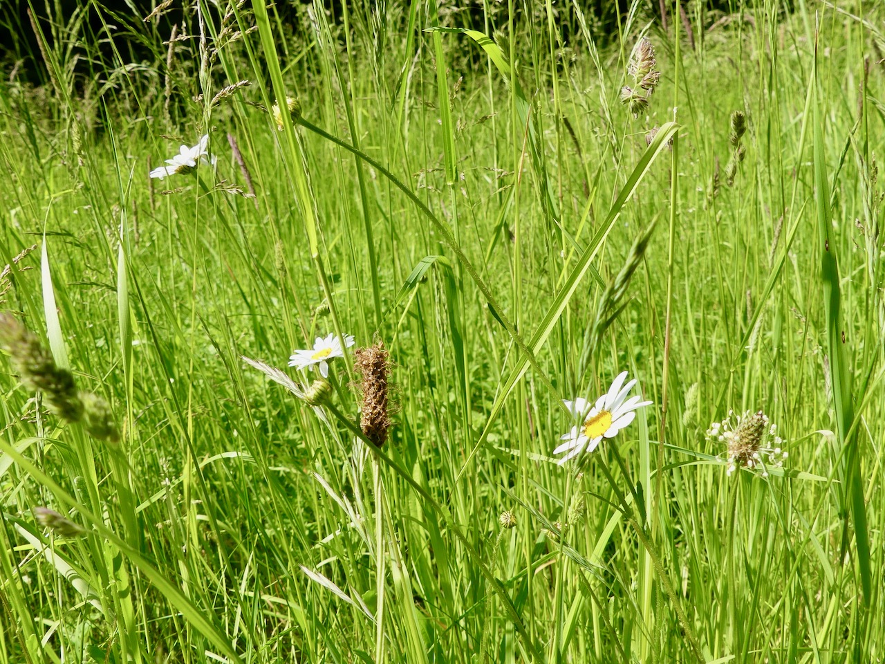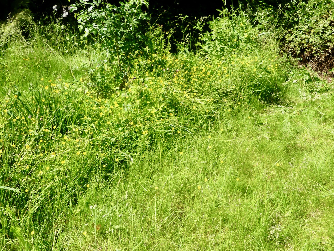 Fazit: Mein altes System, immer nur ein Stückchen und wo gerade etwas blüht drumherum mähen, taugt mir besser, als die ganze Fläche nicht zu mähen. Die Wiese wird ja sowieso nur 1-2x jährlich gemäht.