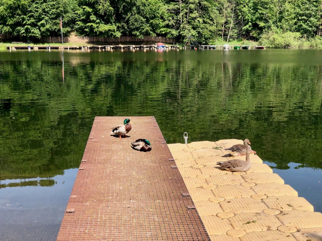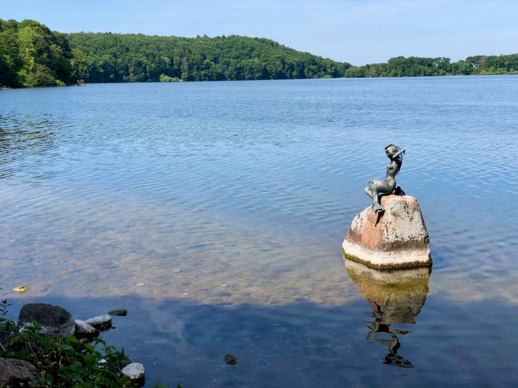Ich laufe an der Hafenpromenade entlang, grüße die Enten und Gänse, würdige die Seejungfrau und gelange dann in einen kühlen, schattigen Wald. Hier stoße ich auf die Spiegelteiche. Der Versuch des Oldenburger Großherzogs Nikolaus Friedrich Peter, hier eine Fischzucht zu etablieren, schlug fehl, aber die Touristen mochten sie und schließlich wurde hier eine Kneippanlage angebaut. Ich trete das eisige Quellwasser und tunke die Arme hinein, danach laufe ich noch ein Stück weiter am See entlang. Als der kleine Hunger kommt, kehre ich um.