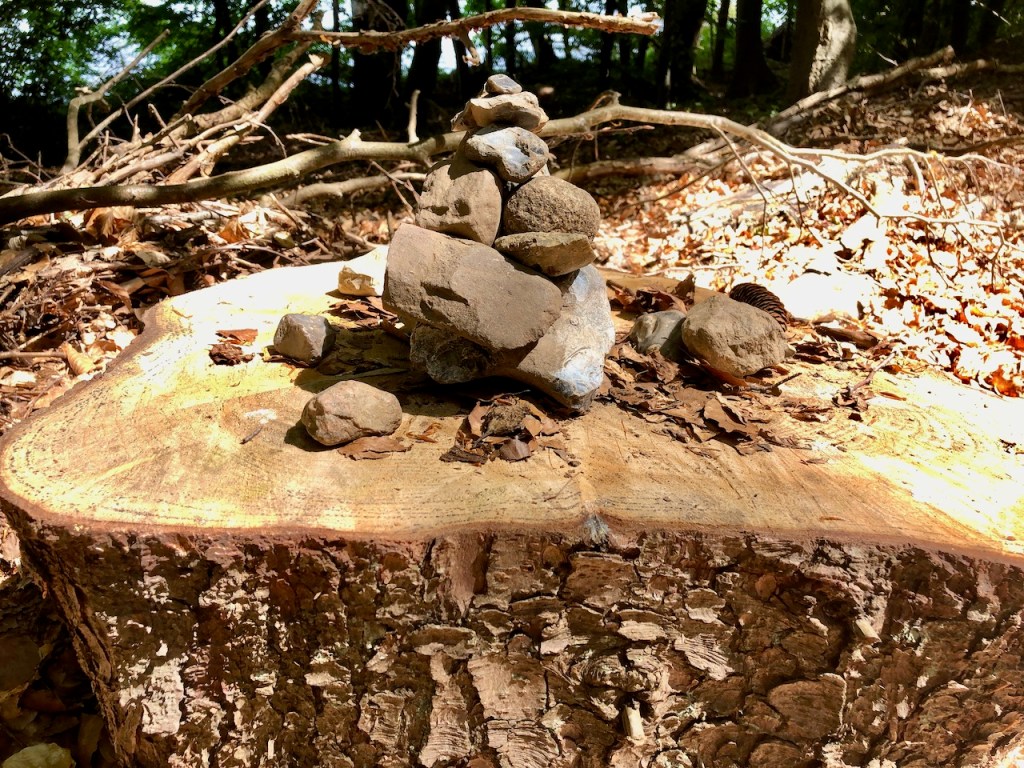 Aus einem Haufen Steine baue ich mein erstes Steinmännchen, schaffe es aber nicht, alle Steine unterzubringen. Der kleine Troll lacht mich aus. Über die Promenade gehe ich zurück zum Bootshaus am Dieksee, wo ich leckeren Fisch bekomme. Im Nachhinein betrachtet, hätte ich auch weiter gehen können bis Niederkleveez und von dort mit dem Schiff zurück aber hinterher ist man immer schlauer. So suche ich mir nach dem Essen zum Verdauen einen schattigen Platz am See, und tunke ab und zu meine Füße ins lauwarme Wasser. Die vorletzte Fähre fährt um 16.00. Abends habe ich noch soziale Verpflichtungen in Plön: Die Autorin und Bookcrosserin Martine Lestrat hält eine Lesung in der Touristeninfo.