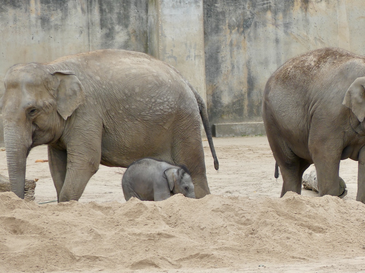 Leider konnte ich nur einen kurzen Blick auf den kleinen Elefanten werfen, bevor die Elefanten wegen Reinigungsarbeiten sich dem Blick entzogen, aber bei den Elefanten gibt es neuerdings einen Holzkran, in dem immer wieder Kinder verschwanden, was ihre Helikoptereltern in helle Aufregung versetzte. Sehr amüsant zu beobachten.