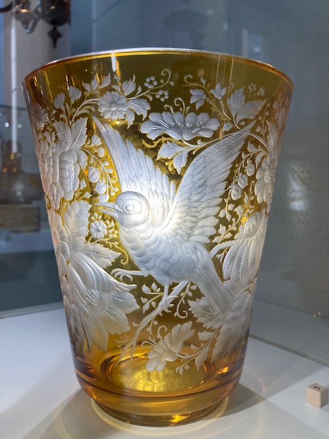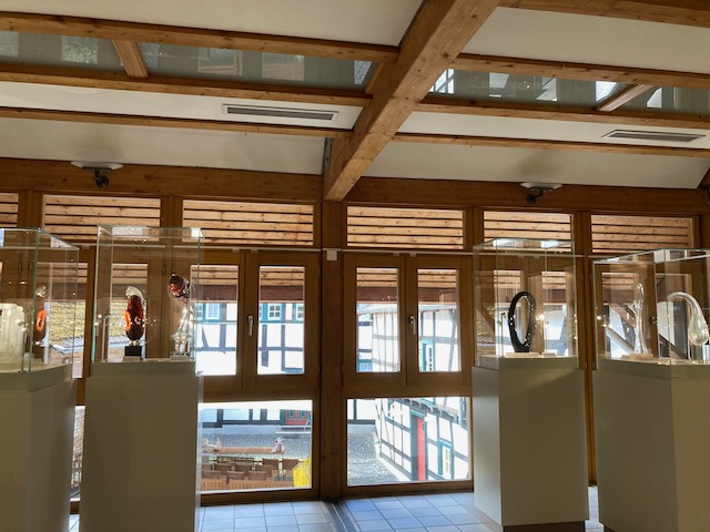 Hier treibe ich mich eine ganze Weile herum. In Rheinbach siedelten sich nach 1945 Glasveredler aus Böhmen an. Auch die Ausstellung widmet sich hauptsächlich der böhmischen Glaskunst. An verschiedenen Hörstationen werden die Lebensgeschichten der Menschen erzählt, die mit dem Glas gearbeitet haben. Besonders traurig fand ich die Geschichte des gefragten selbständigen Glaskünstlers, der in der DDR nur noch Massenware im Akkord anpinseln durfte.