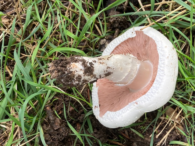 Wiesen- oder Schafchampignon, das blieb noch die Frage. Auf alle Fälle weder Knollenblätterpilz noch Karbolegerling. Kam mir nur etwas groß vor.