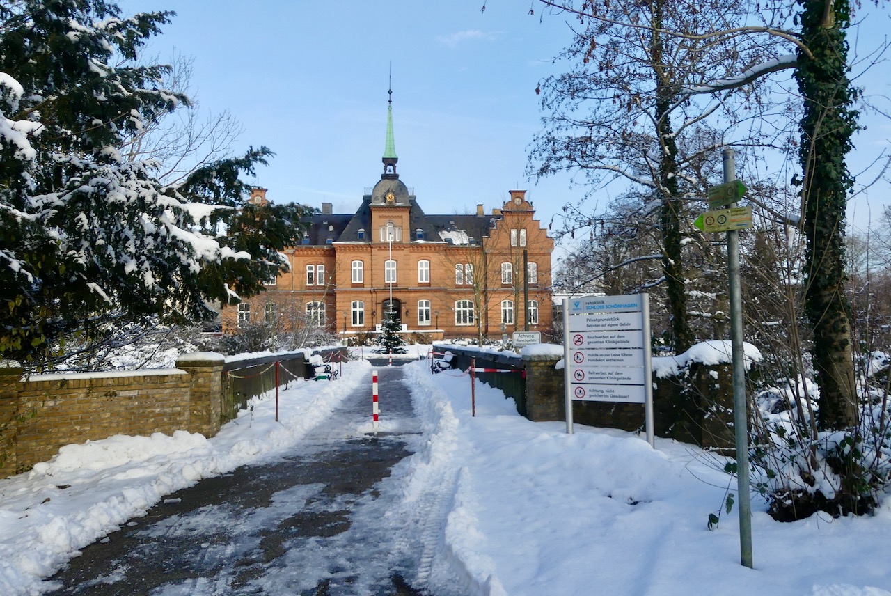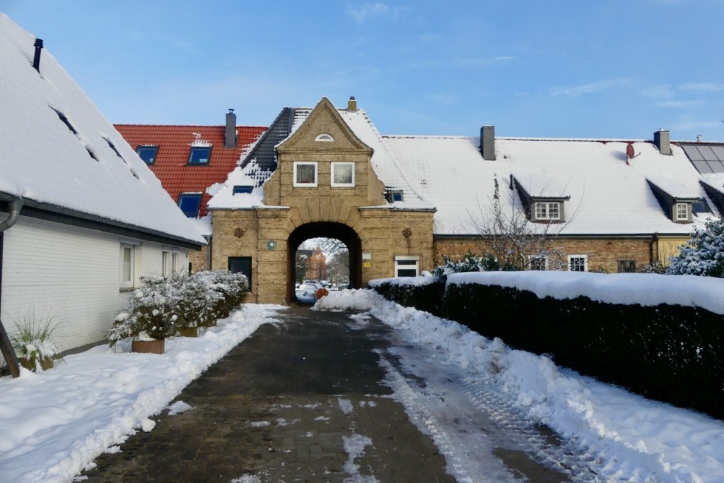 Anfangs war es sonnig und klar bei frostigen -7°C. Geht man über die Brücke durch das Torhaus, Kommt man übrigens zum guten Café in Schönhagen.