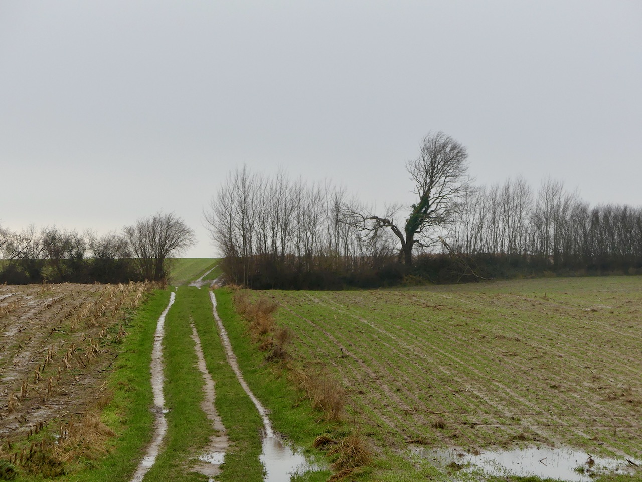 An der abgerutschten Steilküste entlang zu laufen war mir nicht so ganz geheuer. Tiefe Risse hatten sich bis ins Maisfeld gegraben. Und so bog ich denn ab, am Feldrand entlang bis ich wieder auf dem Weg war.