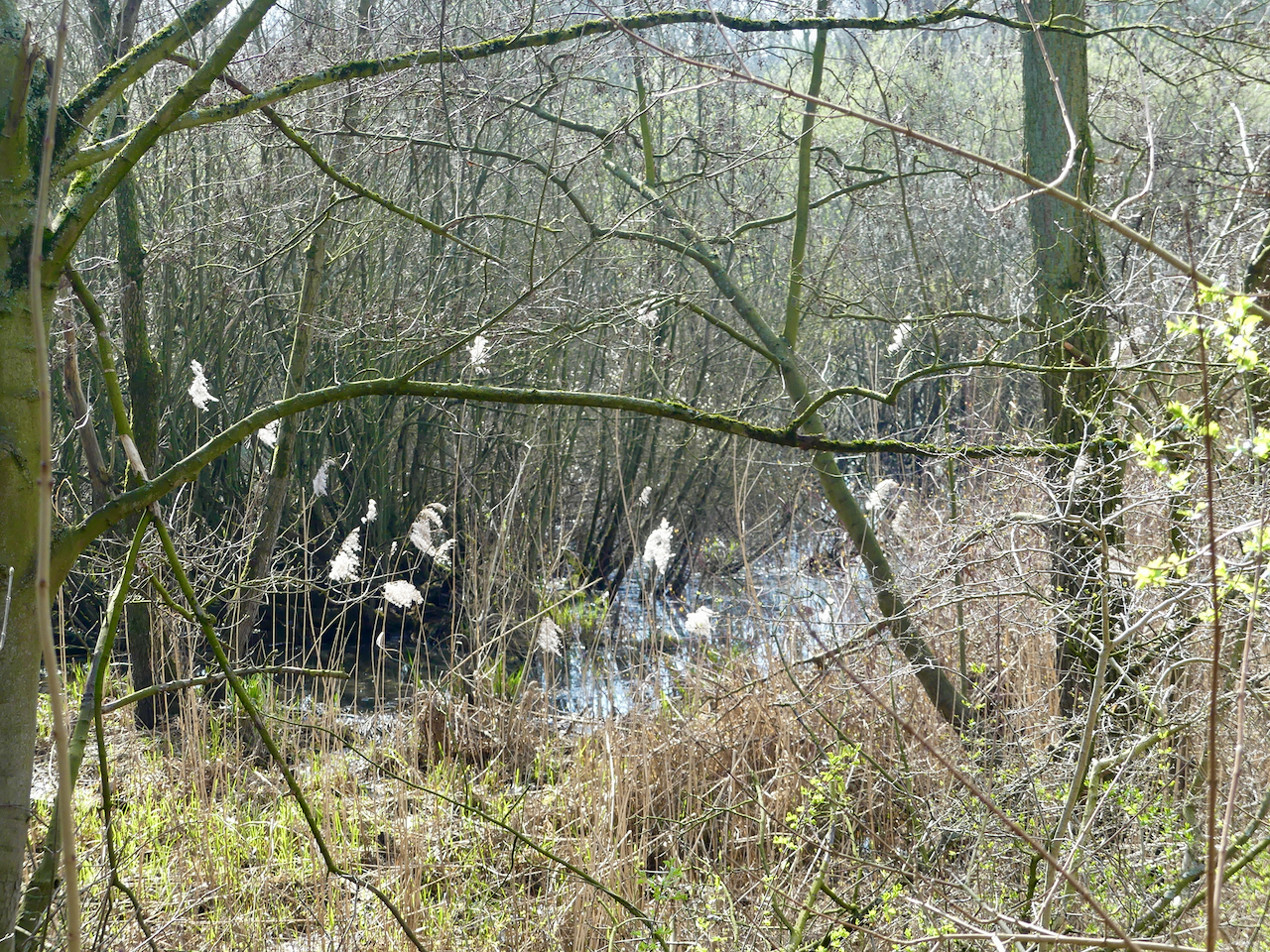 Die Vögel und Frösche sind noch nicht besonders sangesfreudig. Bis auf ein paar schnatternde Gänse und eine paar krächzende Krähen. Auch die Vegetation lässt noch zu wünschen übrig.
