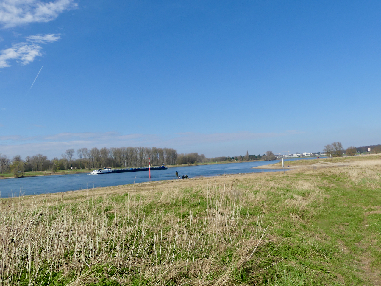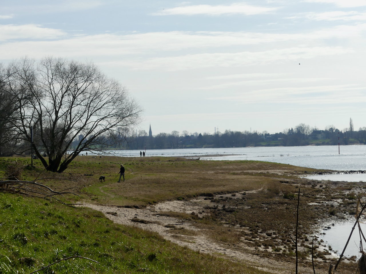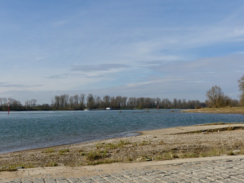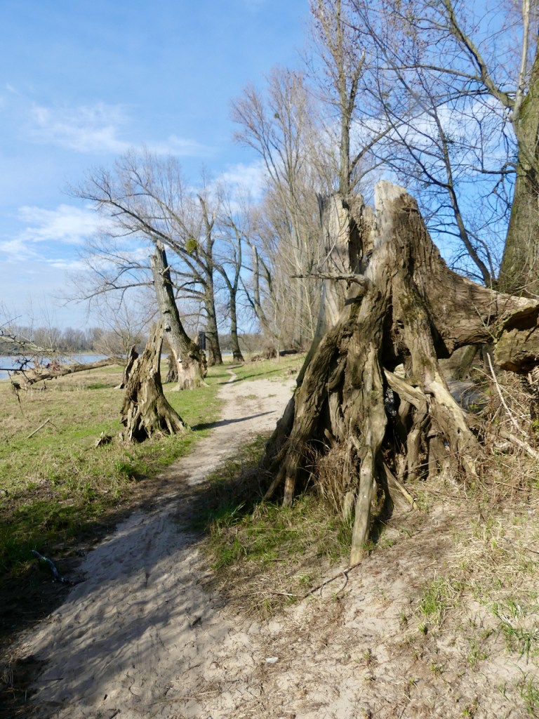 Ab da geht es auf einem schmalen Trampelpfad rheinaufwärts. Es wird tatsächlich warm. Das erste mal im Jahr. Irgendwo bin ich blöd auf eine Wurzel getreten.