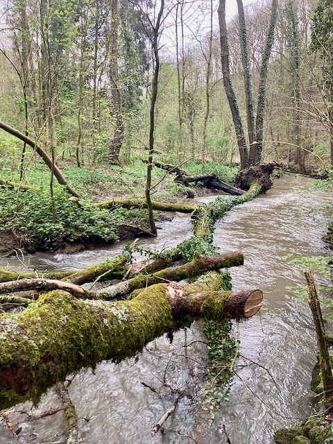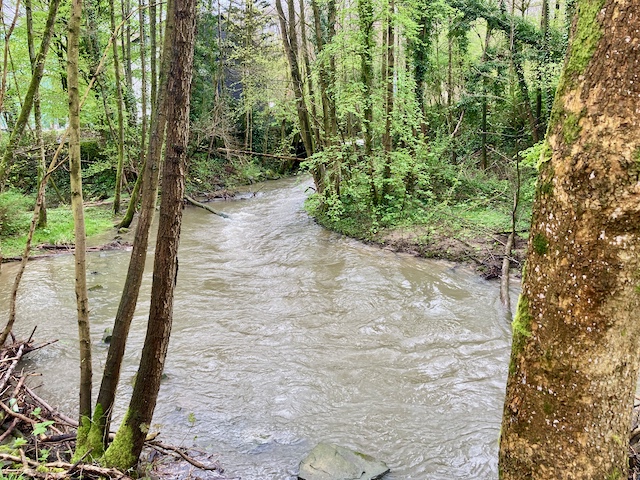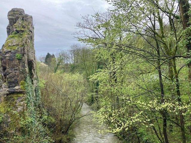 Dann wollte ich noch im Wildgehege die Auerochsen besuchen, aber über mir braute sich schon wieder dunkel etwas zusammen, also nahm ich die Abkürzung über den Kunstpfad an der Düssel und erreichte noch gerade vor dem Unwetter die Haltestelle.