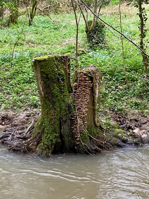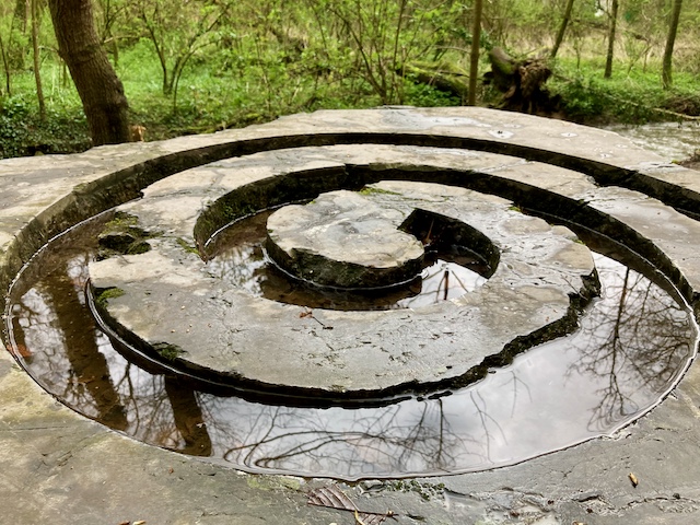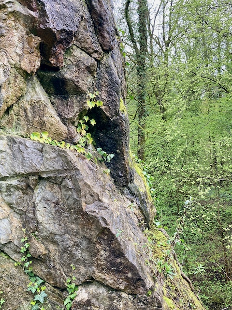 An der Düssel entlang geht es Richtung Fundstelle. Auch hier gibt es Hörstationen an denen die Geschichte des Fundes und des Kalkabbaus erzählt wird.