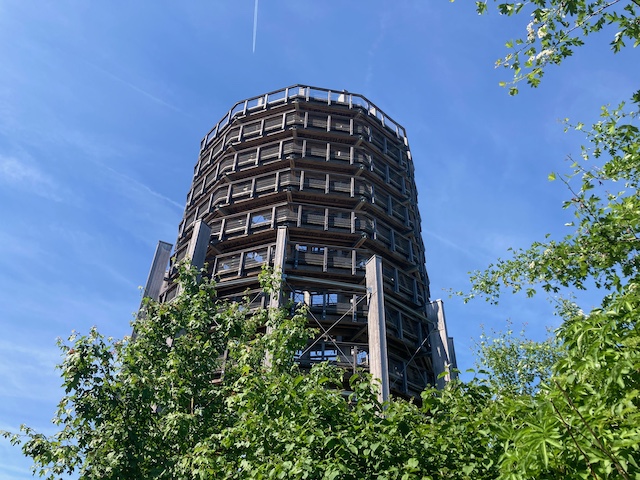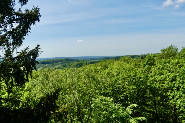 Vom Endpunkt des Baumwipfelpfades kann man bis zum Westerwald gucken. Nach etwas mehr als einer Stunde ist die kurzweilige Führung beendet. Ich besteige noch den Turm.