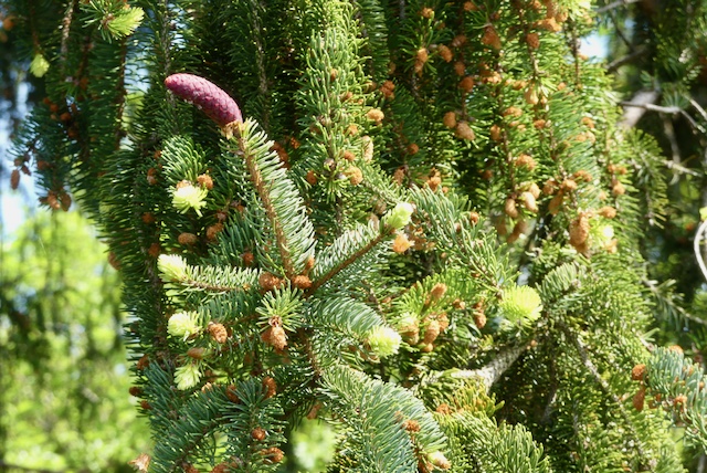 Junge Fichtenzapfen stehen erst aufrecht, dann hängen sie. Tannenzapfen bleiben stehen. Was Nadeln hat, ist noch lange keine Tanne.