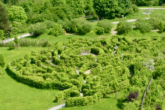 Im Park verstreut liegen die Erlebnisdörfer und Baumhäuser der Jugendherberge. Es gäbe noch so viel zu entdecken, auch den Baumwipfelpfad noch einmal mit den Erklärstationen, aber nach dem Mittagessen bleibt bis zur Abfahrt nur noch wenig Zeit für einen kurzen Gang durch den Irrgarten. Seit ich „Shining“ von Stephen King gelesen habe, bin ich immer froh, dass ich wieder raus finde. Und jetzt überlege ich, ob ich nicht doch noch einmal einen Jugendherbergsausweis anschaffe.