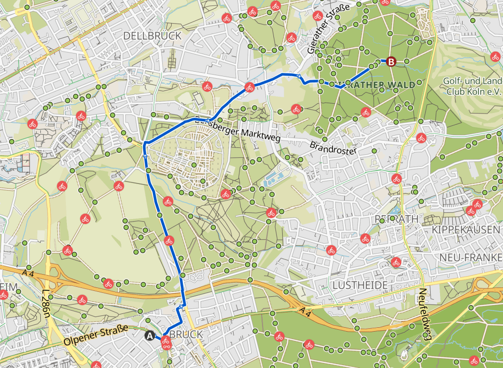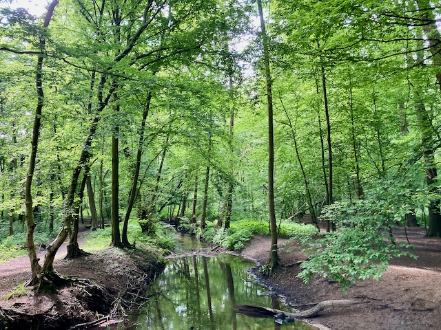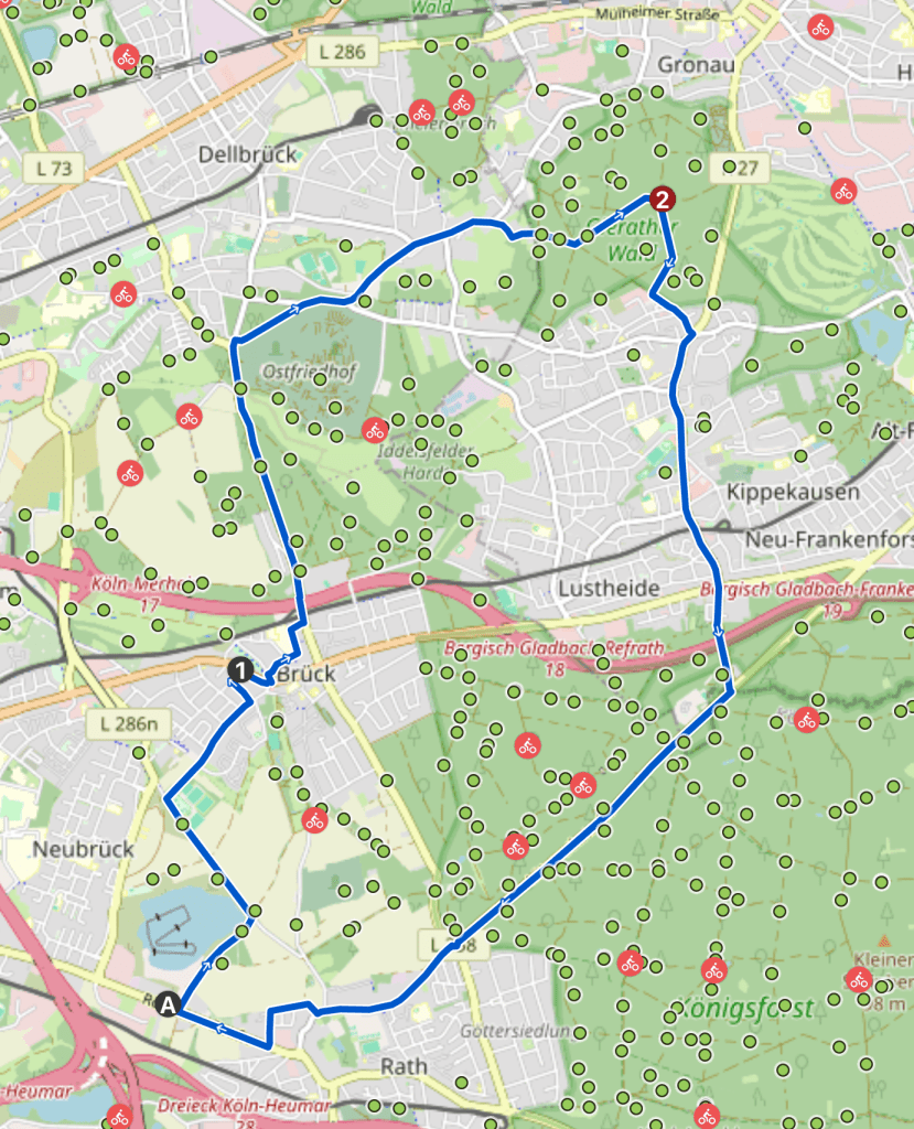 Nachdem ich also Pfingstmontag mit bloggen fertig war und die Nachbarn schon lauthals am feiern, bin ich zum Inder nach Brück gefahren, und wollte nach dem Essen mein sträflich vernachlässigtes Rad etwas bewegen. Den Gierather Wald habe ich wohl schon ab und zu durchquert, aber so wirklich angeschaut noch nicht. Ich habe also – was ich selten mache – am Handy auf Komoot einen Punkt gesetzt „kleiner Teich im Gierather Wald“ und wollte mich führen lassen.