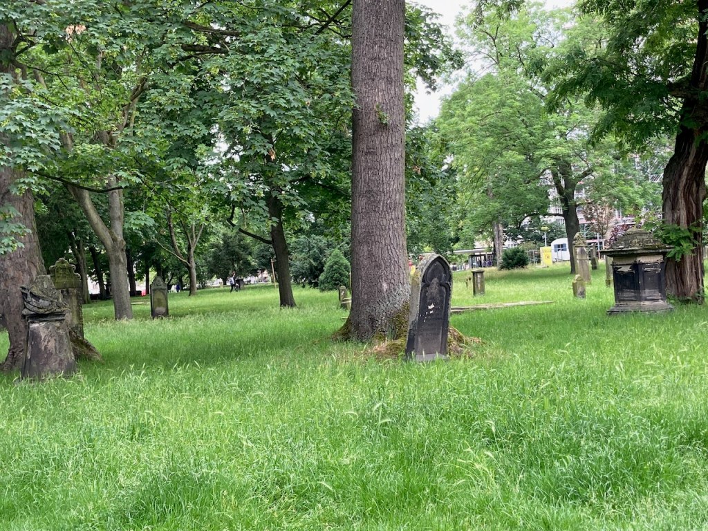 Ich fuhr ein Stück zurück mit der Bahn und fand wieder einen aufgelassenen Friedhof mitten in der Stadt das ist schon etwas überraschend.