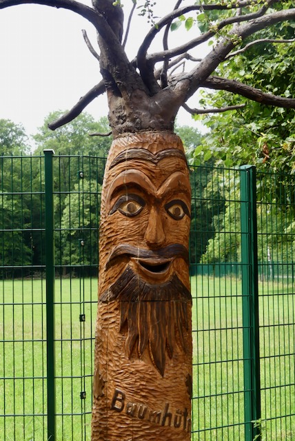 Den freundlichen Baumhüter kannte ich noch nicht. Aus Gut Leidenhausen ist nach dem massiven Wasserschaden ein Umweltbildungszentrum geworden. Darin gibt es jetzt auch ein öffentliches Bücherregal. Ansonsten war eher wenig los: Greifvogel-Rettungstation geschlossen, kein Wild im Wildgehege, keine Pferde auf der Rennbahn.