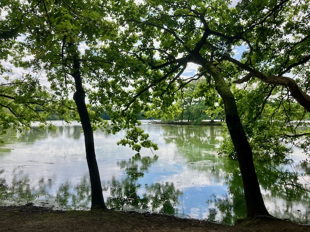 Währenddessen sah ich vom anderen Teichufer etwas heranziehen. Also nix wie weg durch diese Weidenallee.