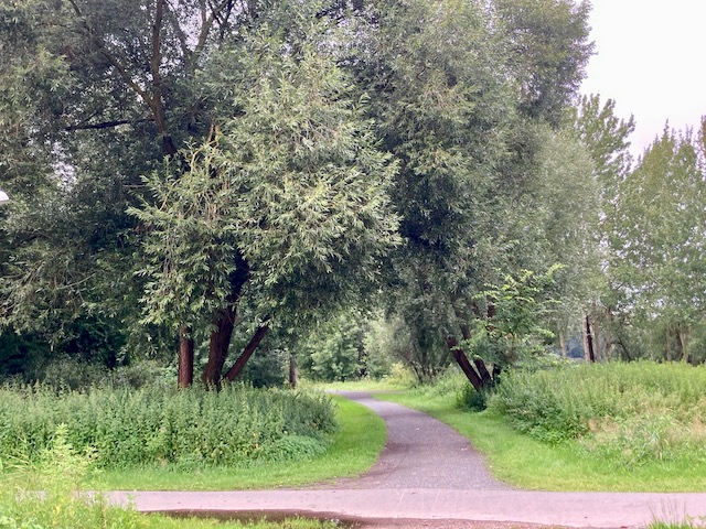 Komoot jagt mich noch durch ein Industriegebiet und dann endlich bin ich wieder am Kanal. Und der Weg ist breit. Und die Blumen blühen. Und offensichtlich hat mein Stoffwechsel auf Fettverbrennung umgeschaltet. Kein Hunger mehr.