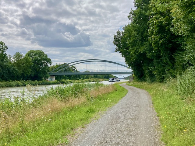 Der Mittellandkanal verläuft wirklich immer geradeaus, mitten durchs Land. Manchmal ist klar, warum ich über eine Brücke muss, manchmal nicht. Unklar ist immer, ob der Wirtschaftsweg auf der anderen Seite vielleicht besser ist.