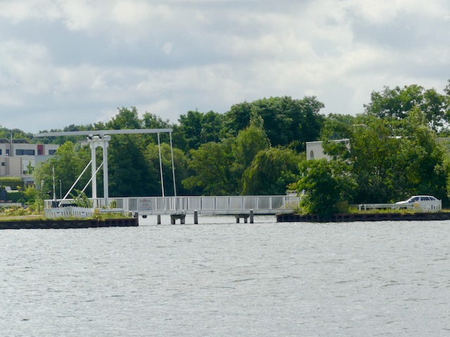 Jetzt müssen sie hinter mir her schleichen, bis ich eine Ausweichstelle finde. Ich lasse sie vorbei und nutzte die Gelegenheit, mit der richtigen Kamera ein paar Fotos zu machen. Die meisten habe ich auch schon wieder gelöscht. Gegenüber ist ein Rasenmäherboot bei der Arbeit. Und das schneller als ich dachte.