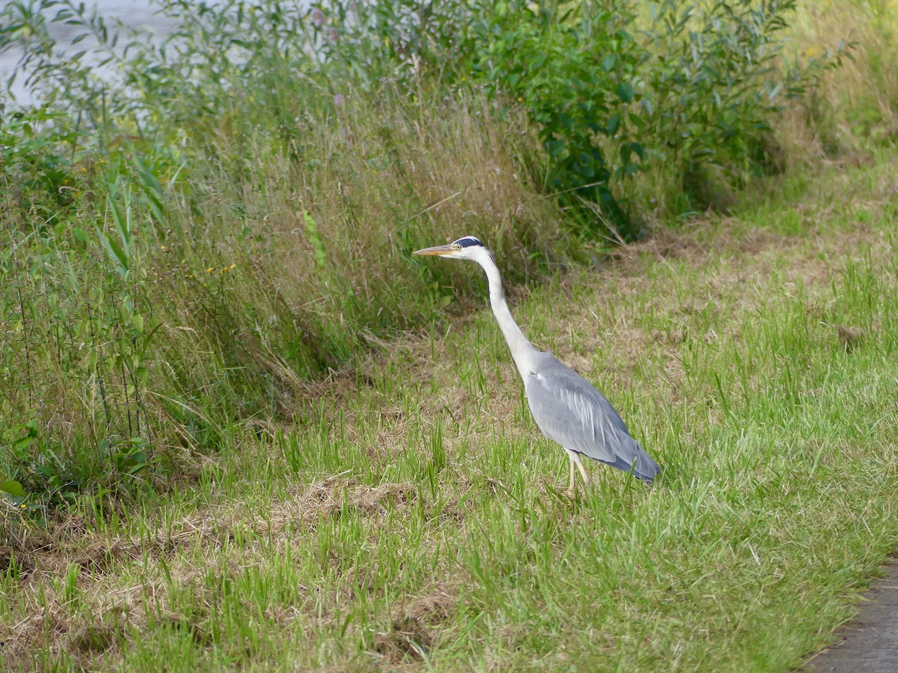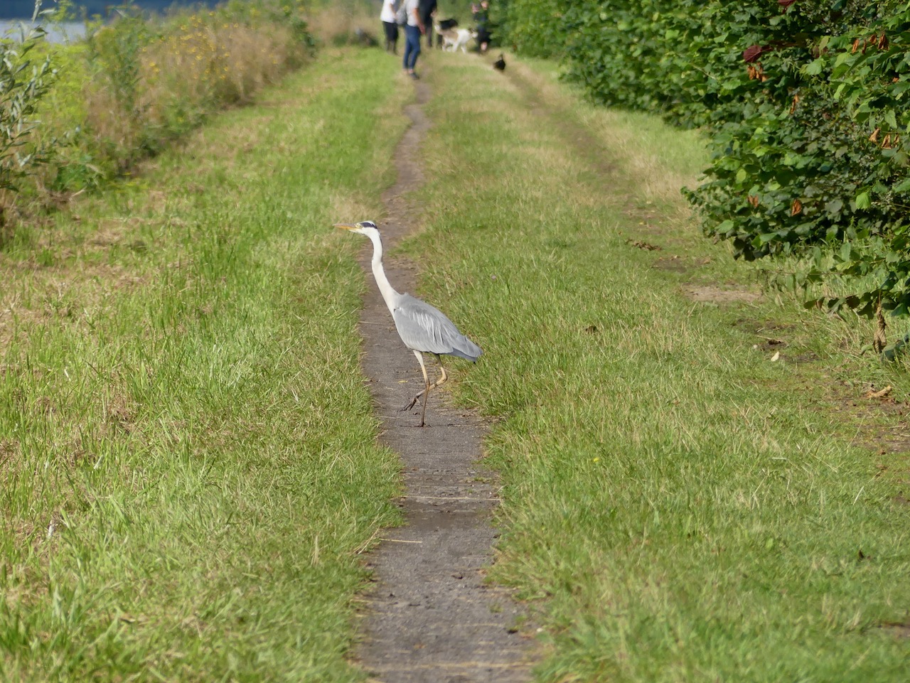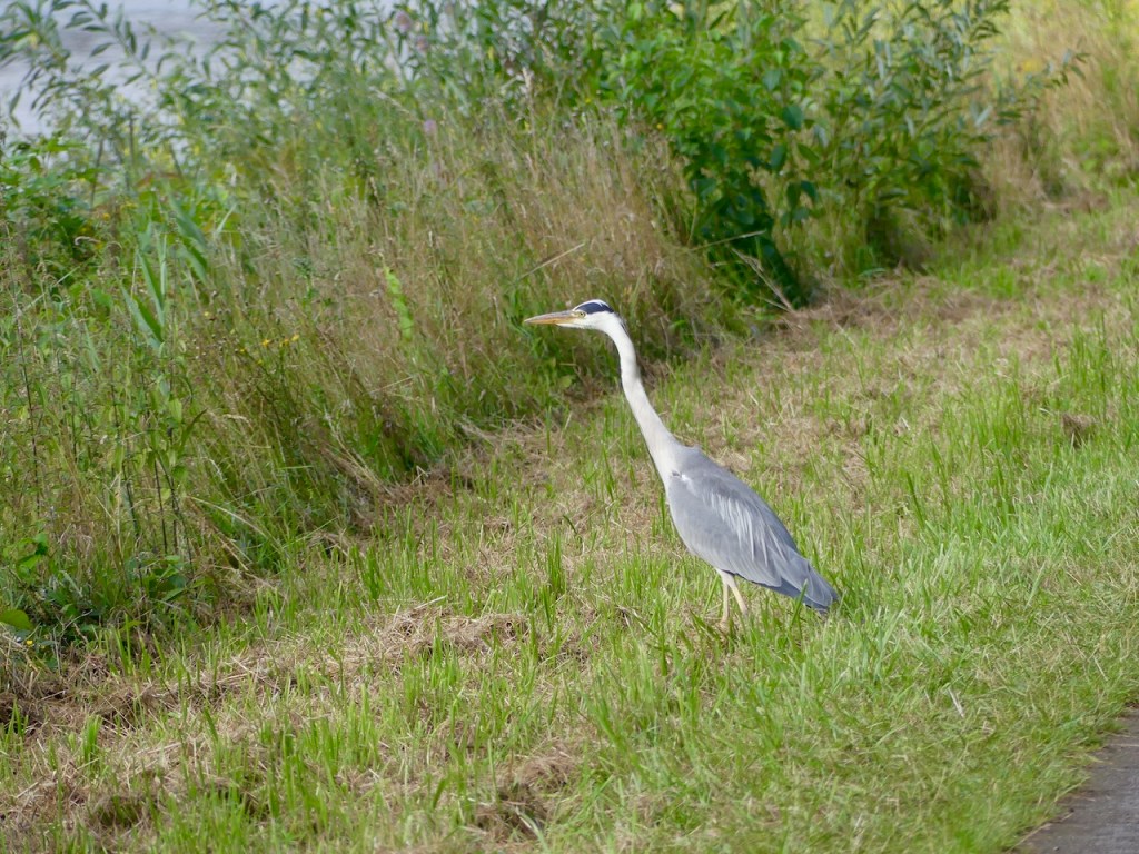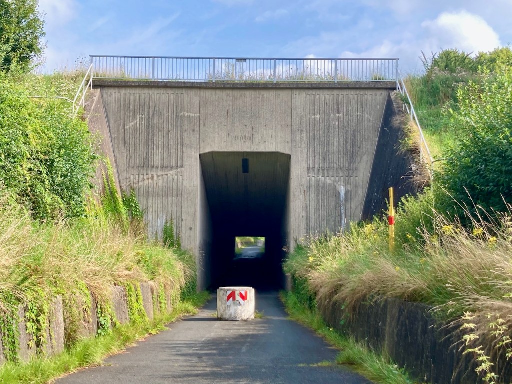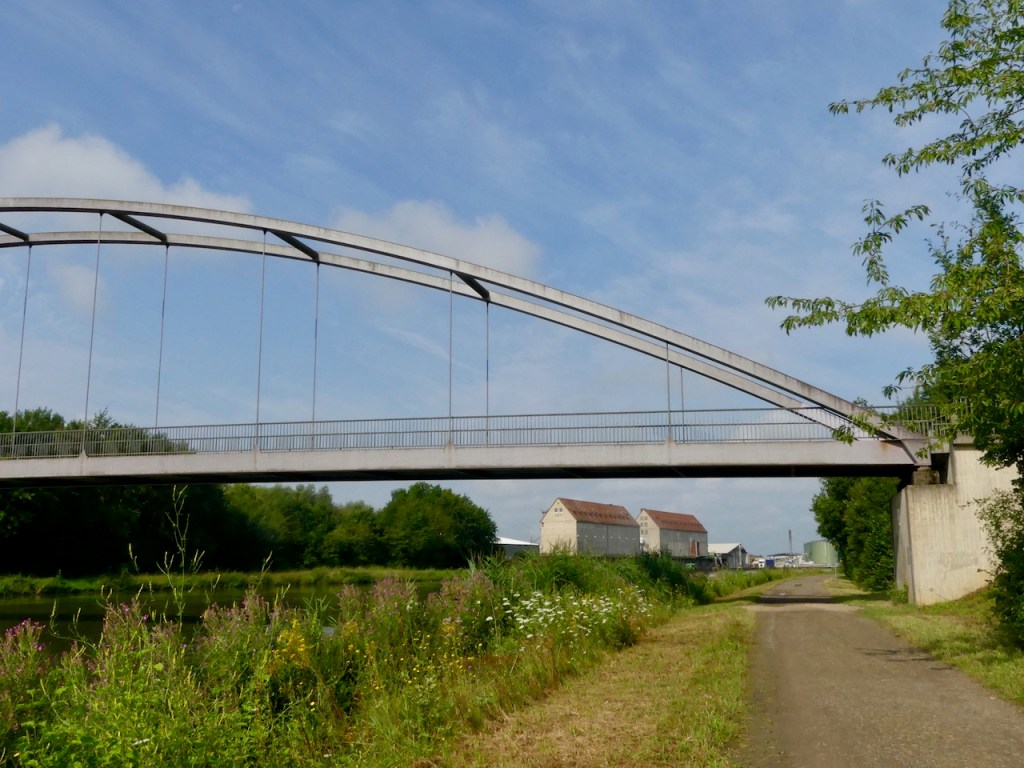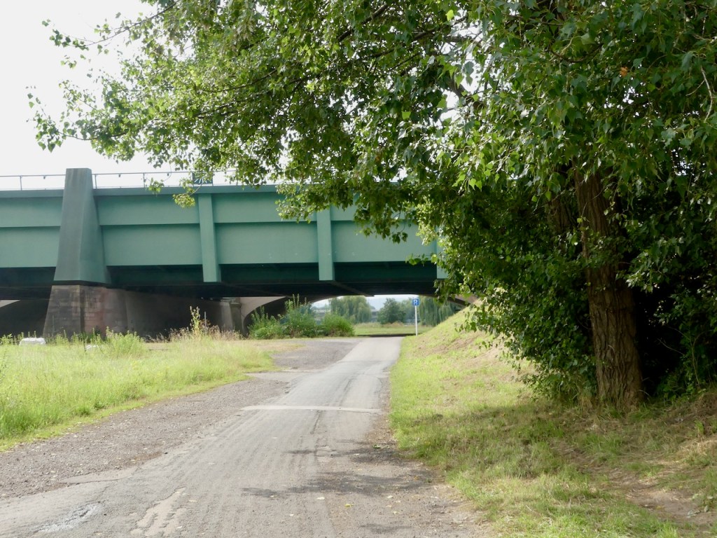 Danach muss ich mal wieder die Seite wechseln. Komoot sagt, hinter der Brücke scharf rechts, den Steilhang runter. Ich werfe einen Blick auf die Karte und fahre stattdessen bequem links runter zum Hafen Beerenbusch. Komoot sagt: „Du hast die Tour verlassen! Wirf einen Blick auf die Karte!“