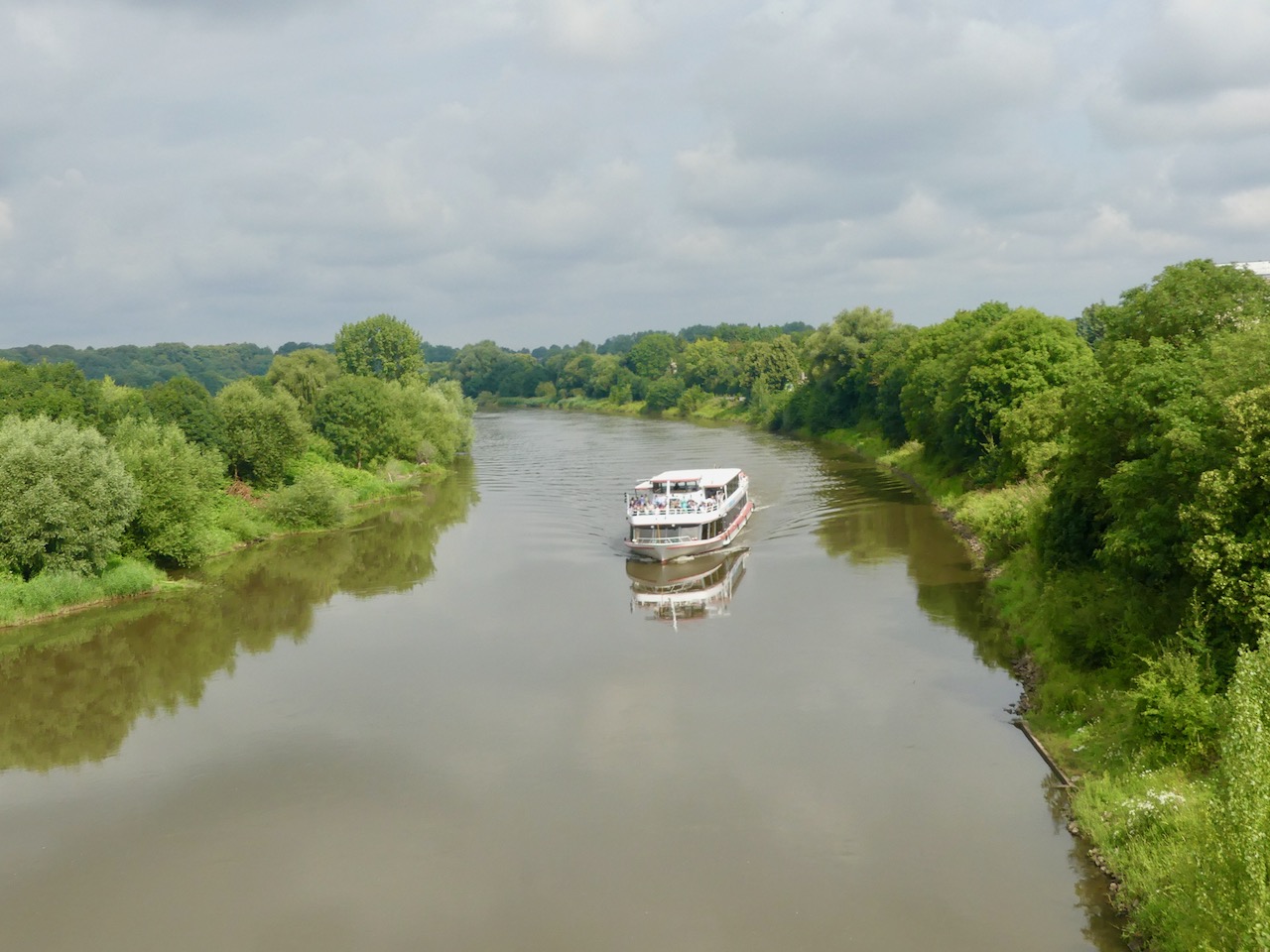 Als ich da wieder aus komme, sieht der Himmel bedrohlich aus und ich entscheide mich spontan, ab Bahnhof Minden den Zug zu nehmen, anstatt nach Bad Oeynhausen zu fahren. Außerdem sind Endbahnhöfe besser zum Einsteigen mit Rad.